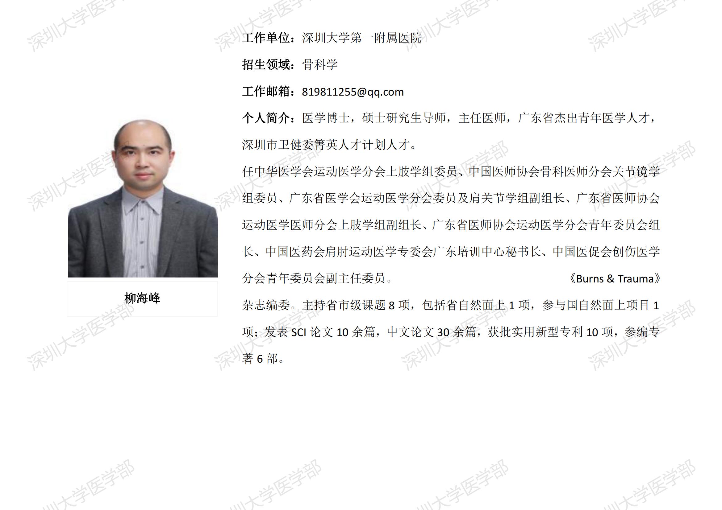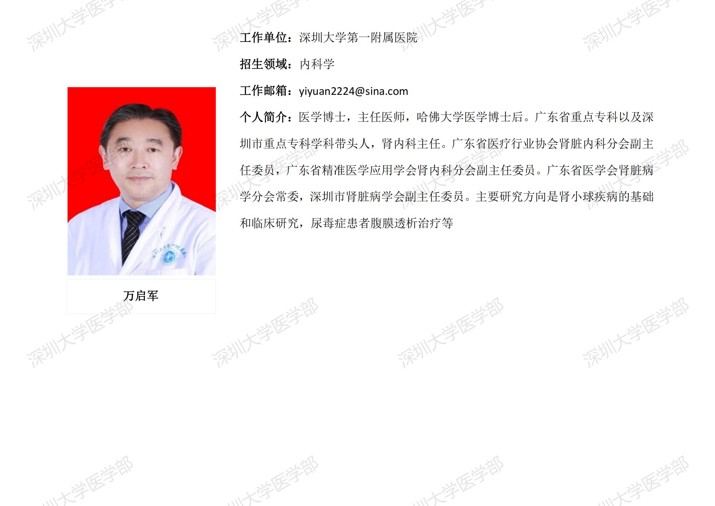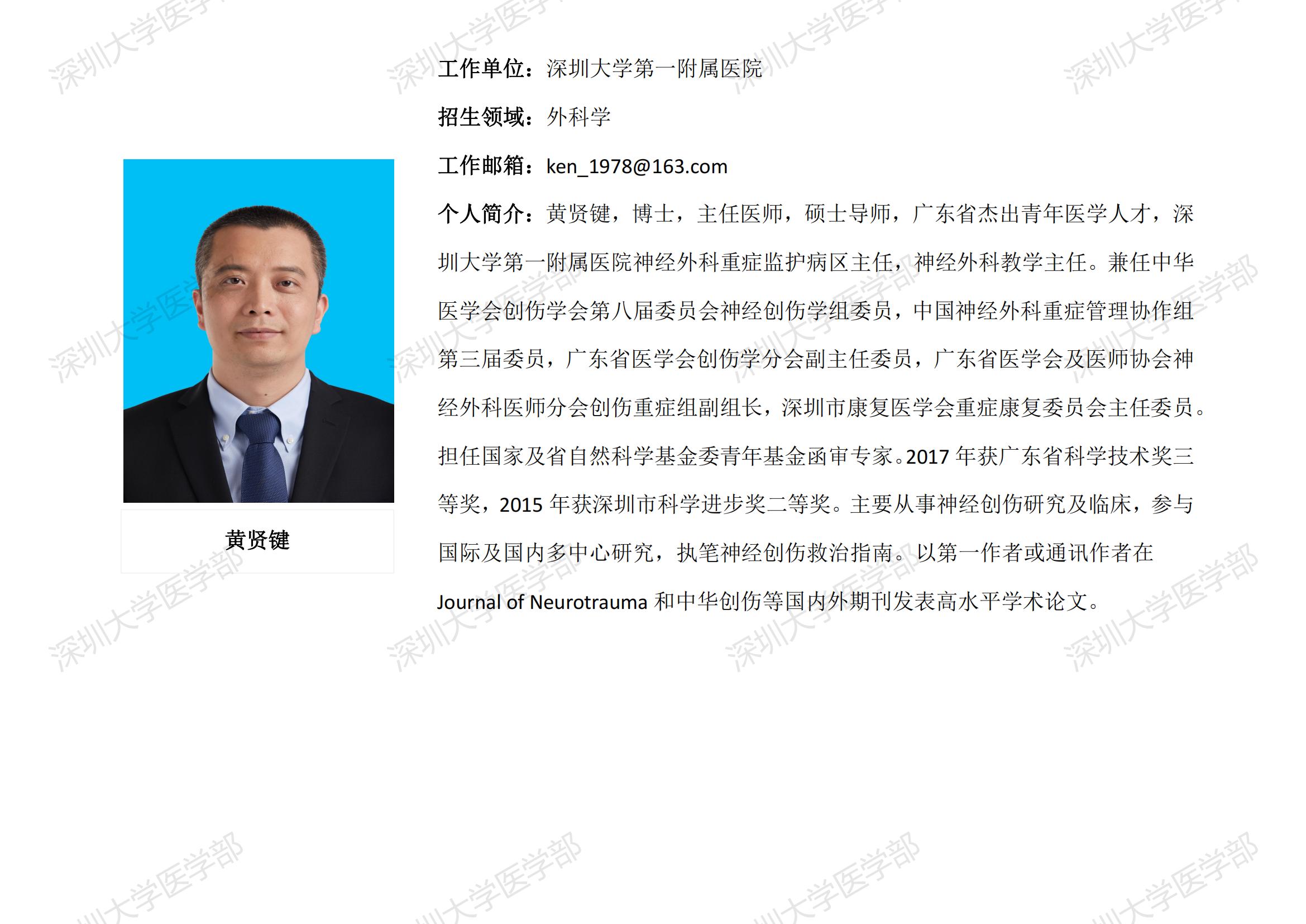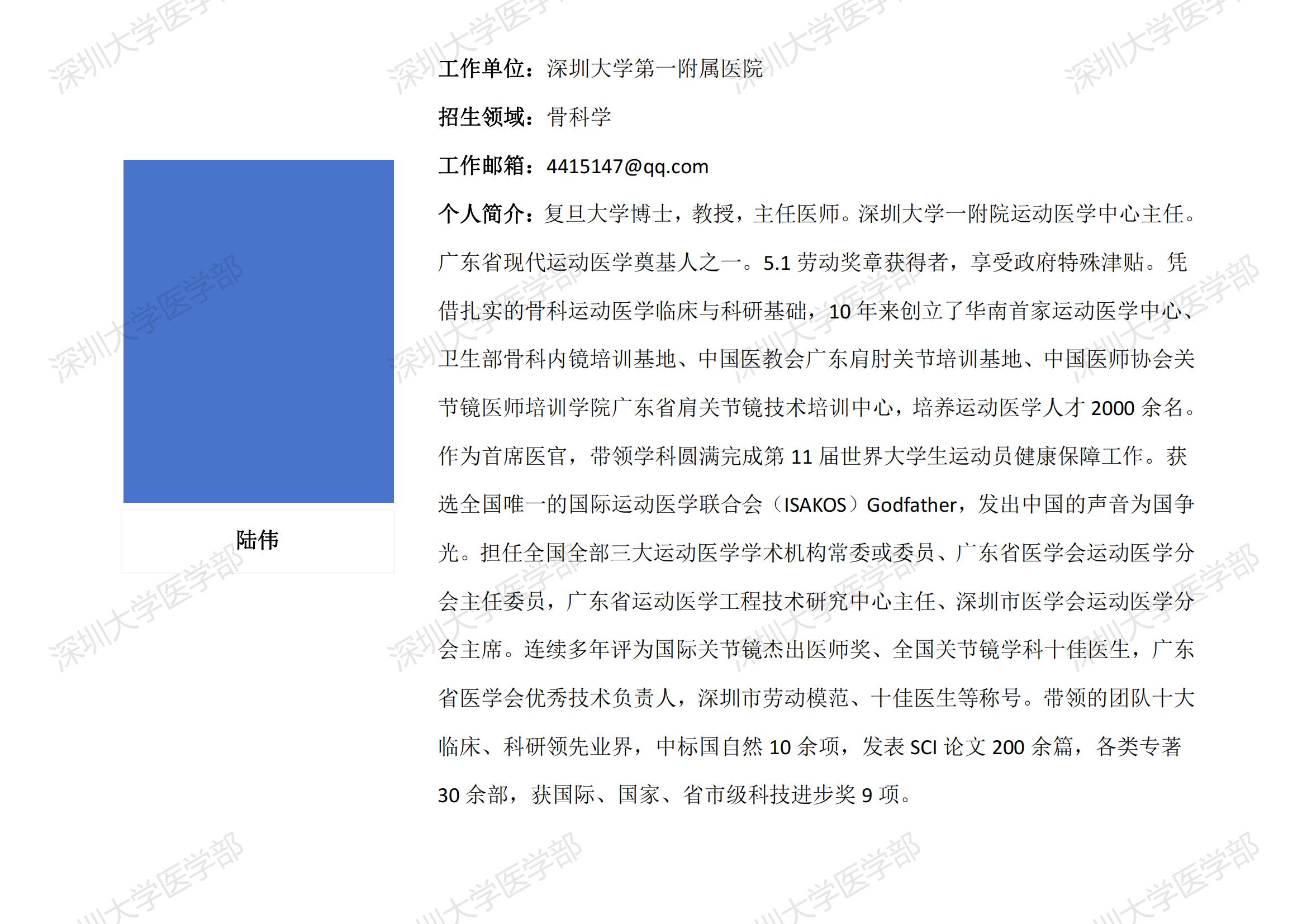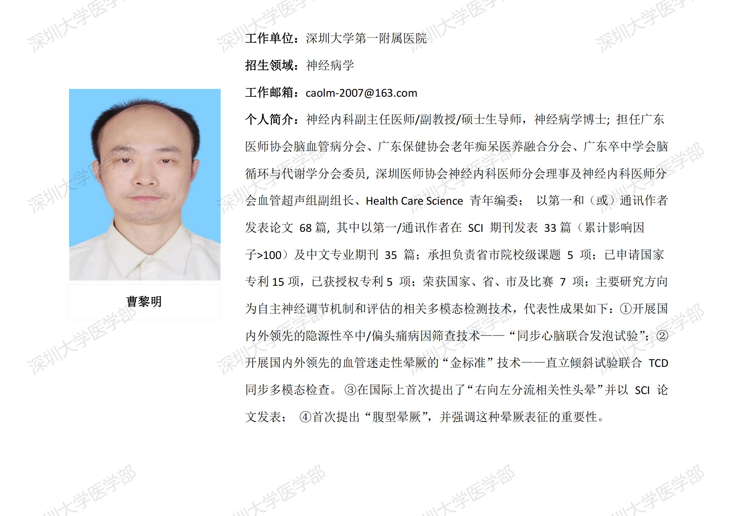 球盟会QMH(中国)官方网站 临床医学专业硕士研究生导师简介--深圳大学第一附属医院