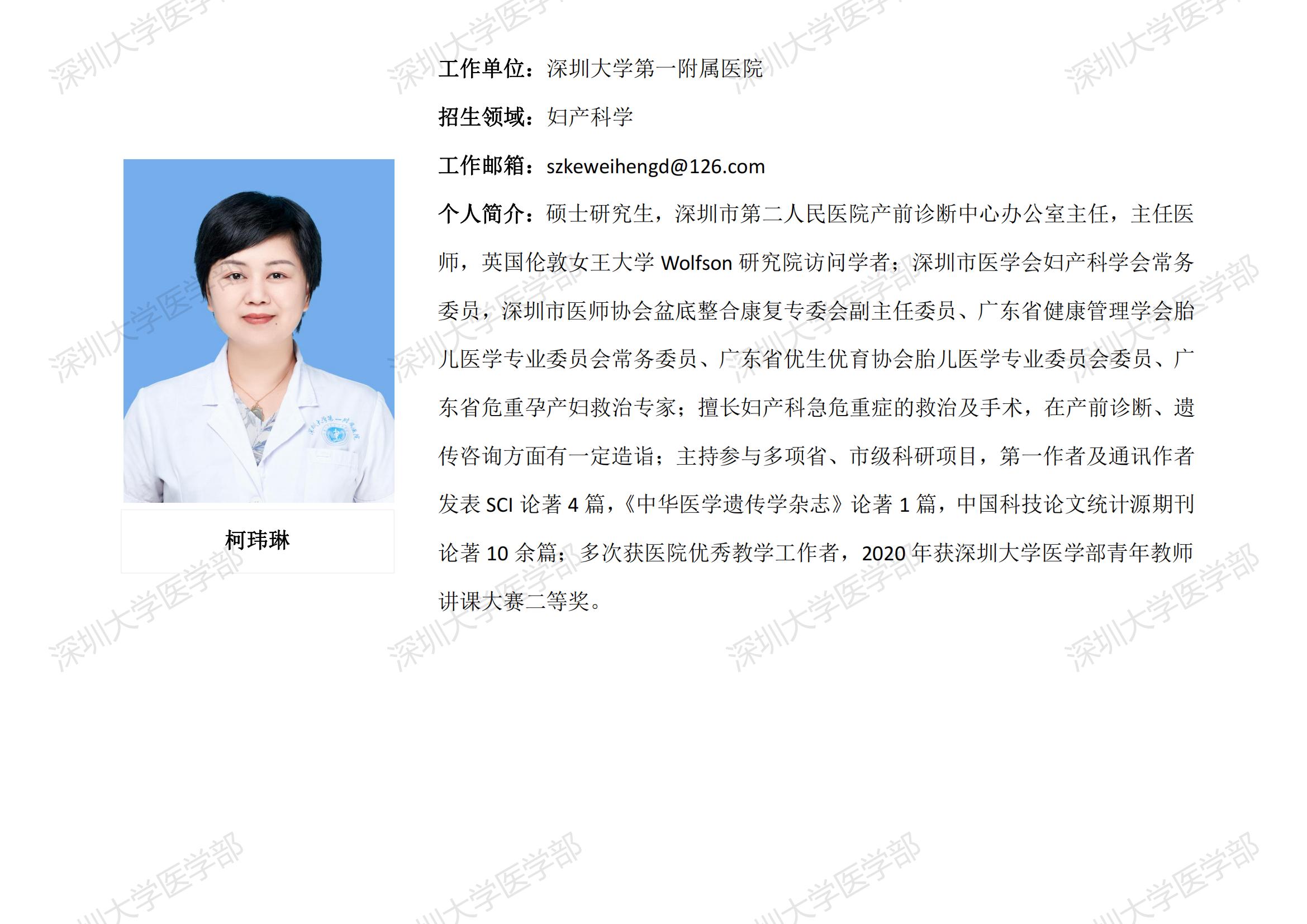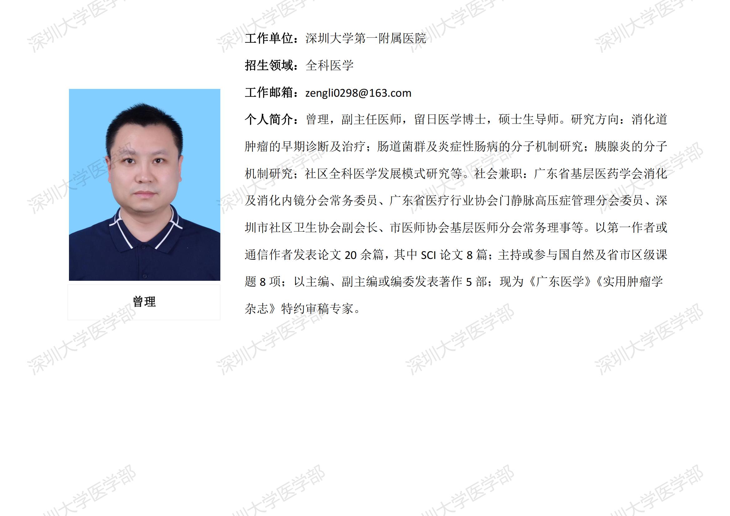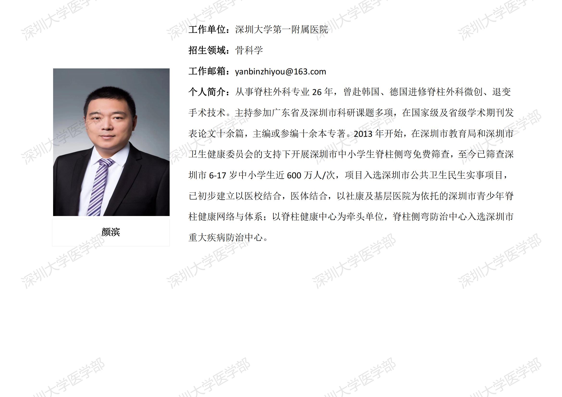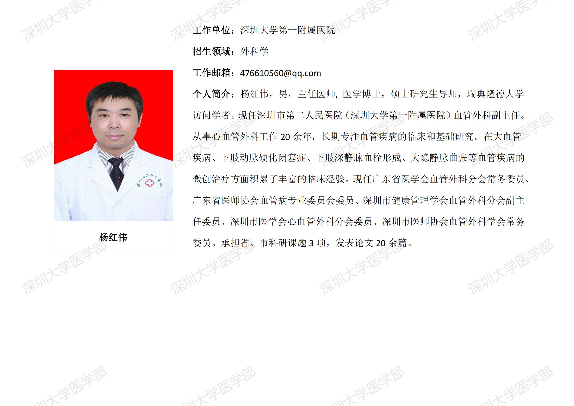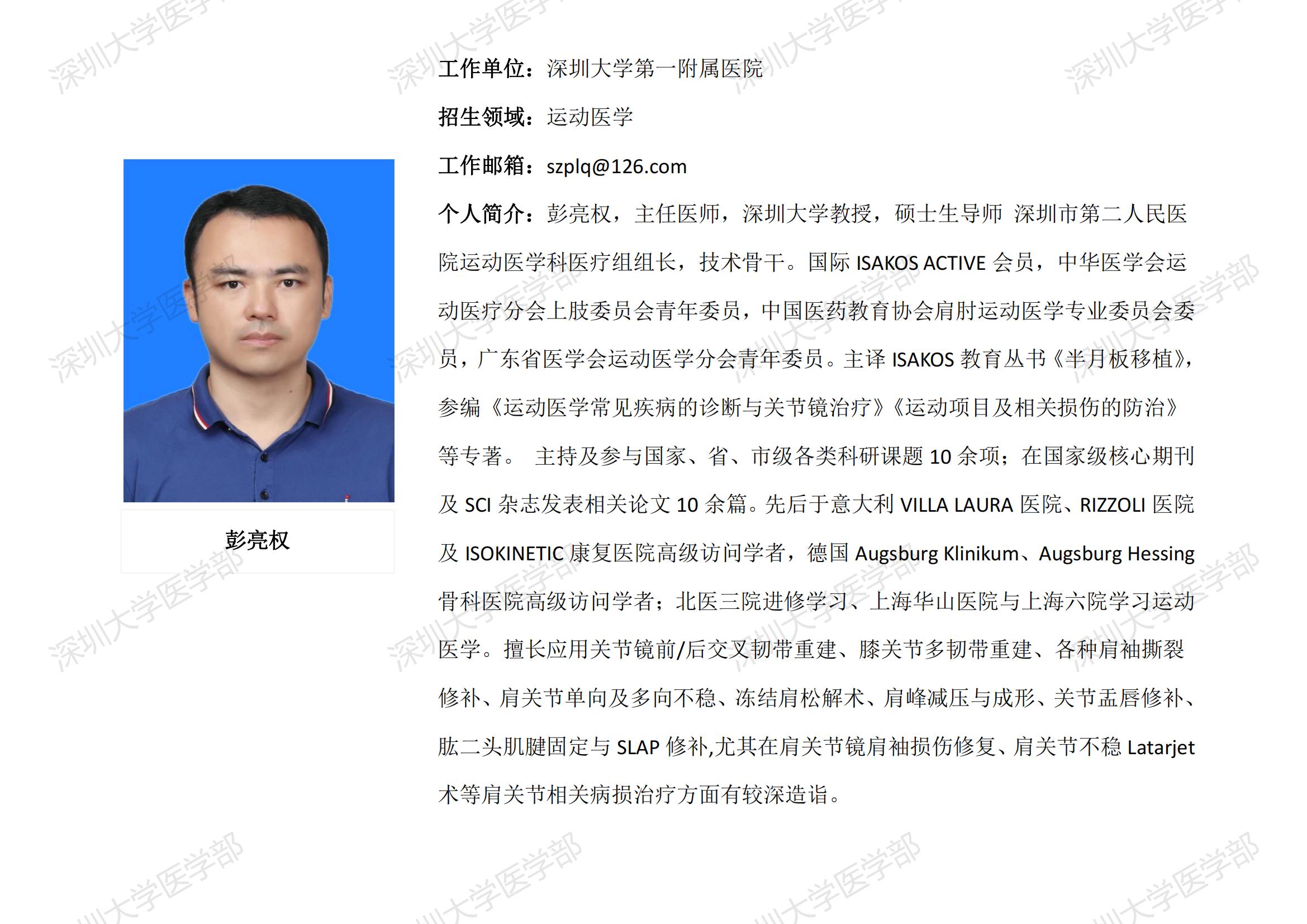 球盟会QMH(中国)官方网站 临床医学专业硕士研究生导师简介--深圳大学第一附属医院