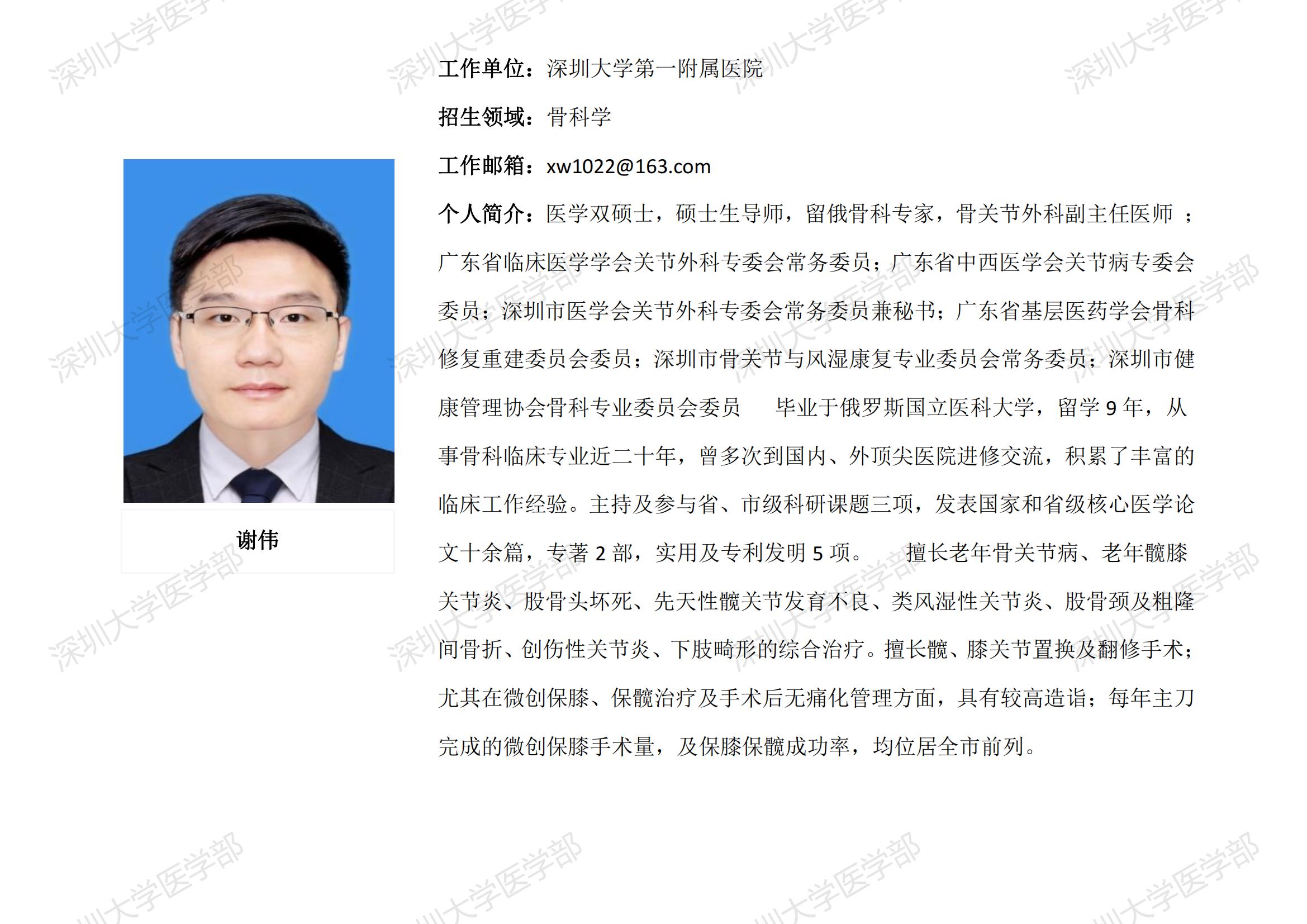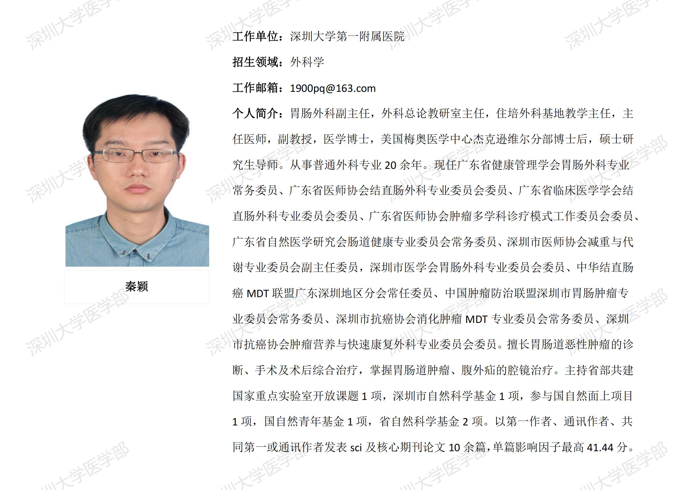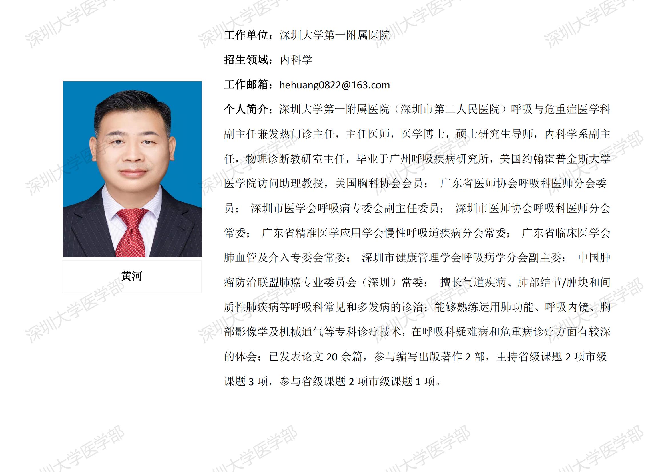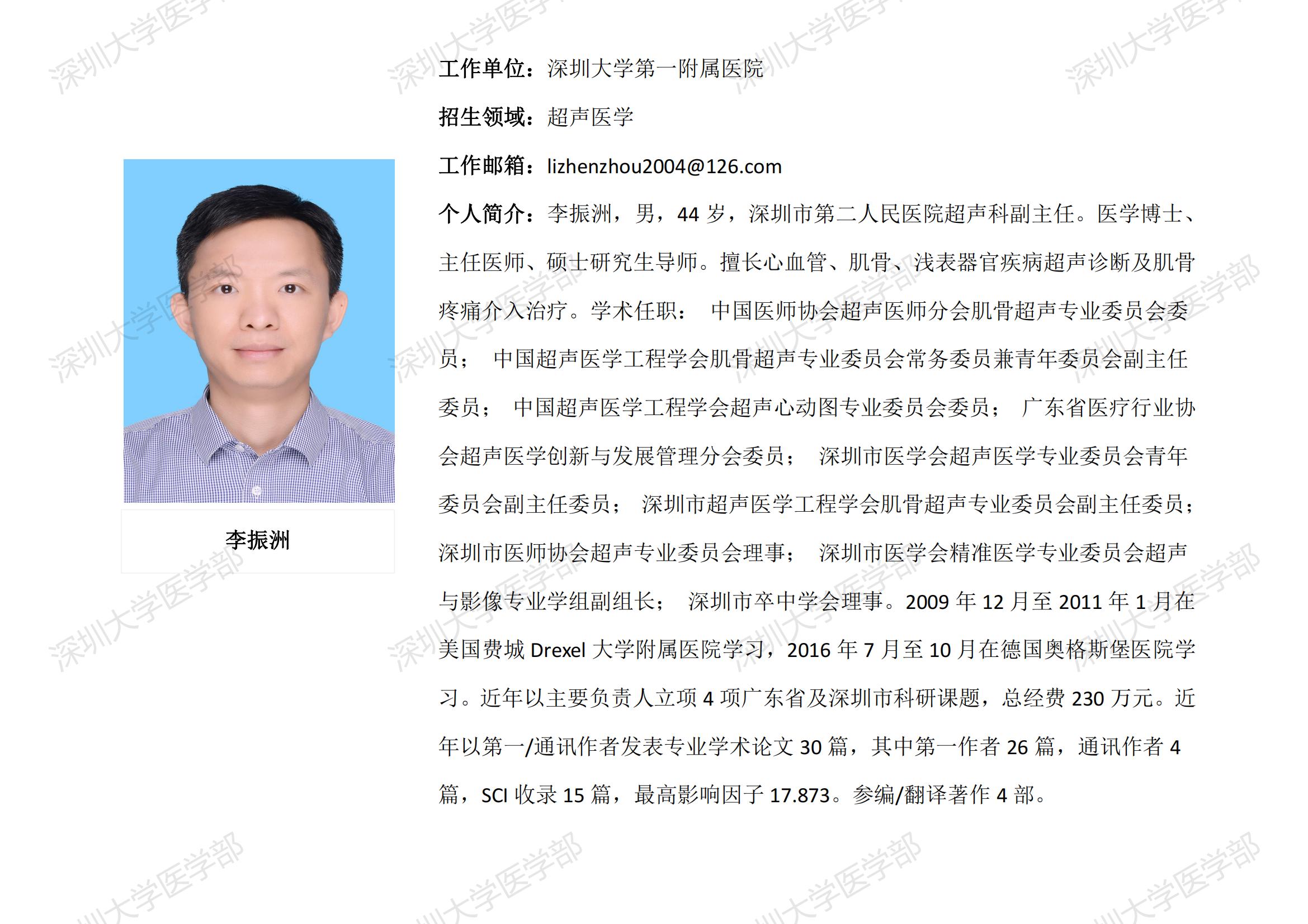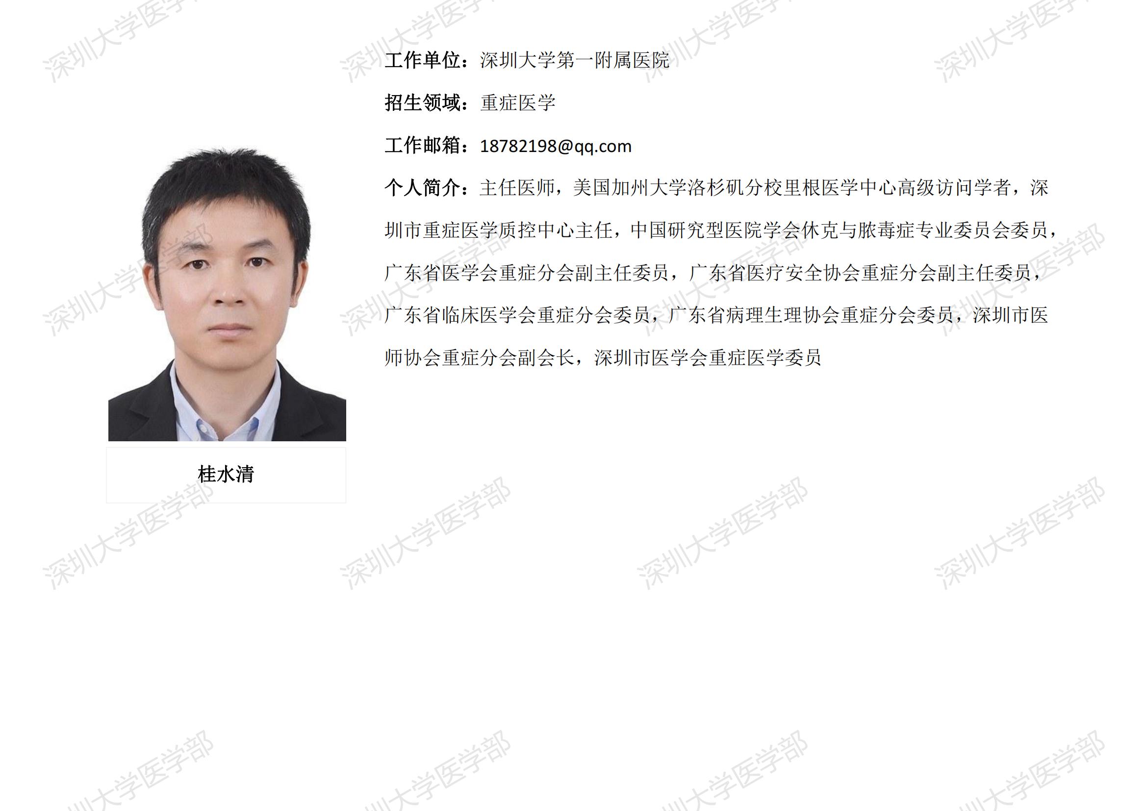 球盟会QMH(中国)官方网站 临床医学专业硕士研究生导师简介--深圳大学第一附属医院