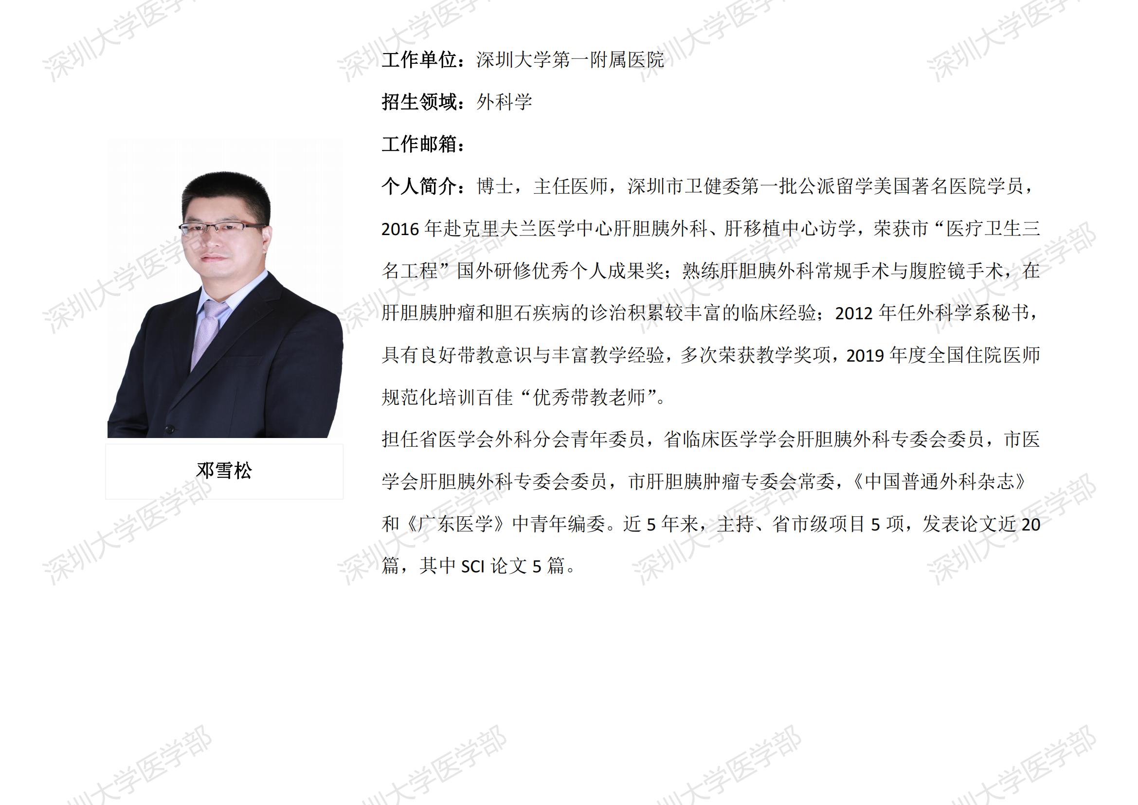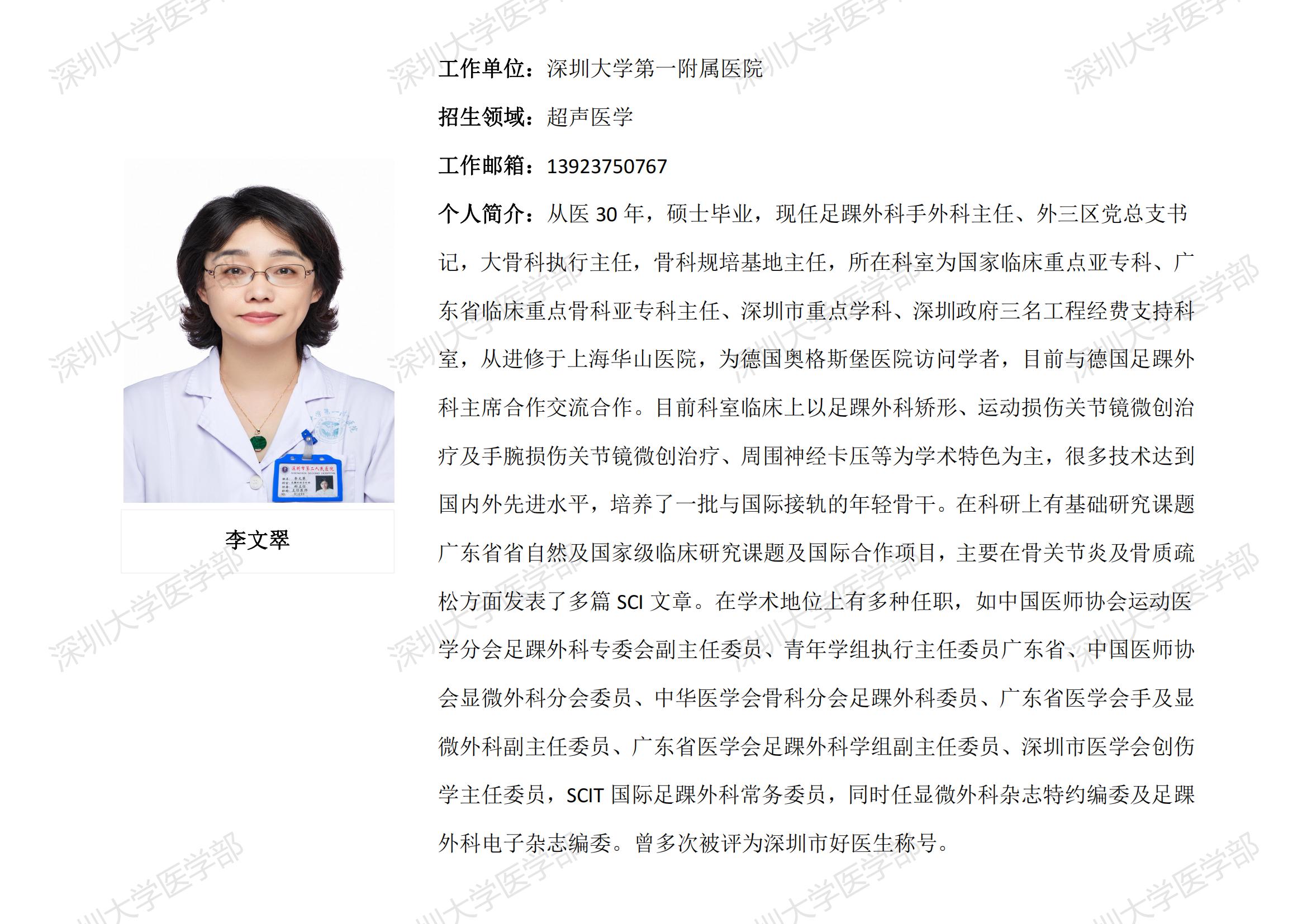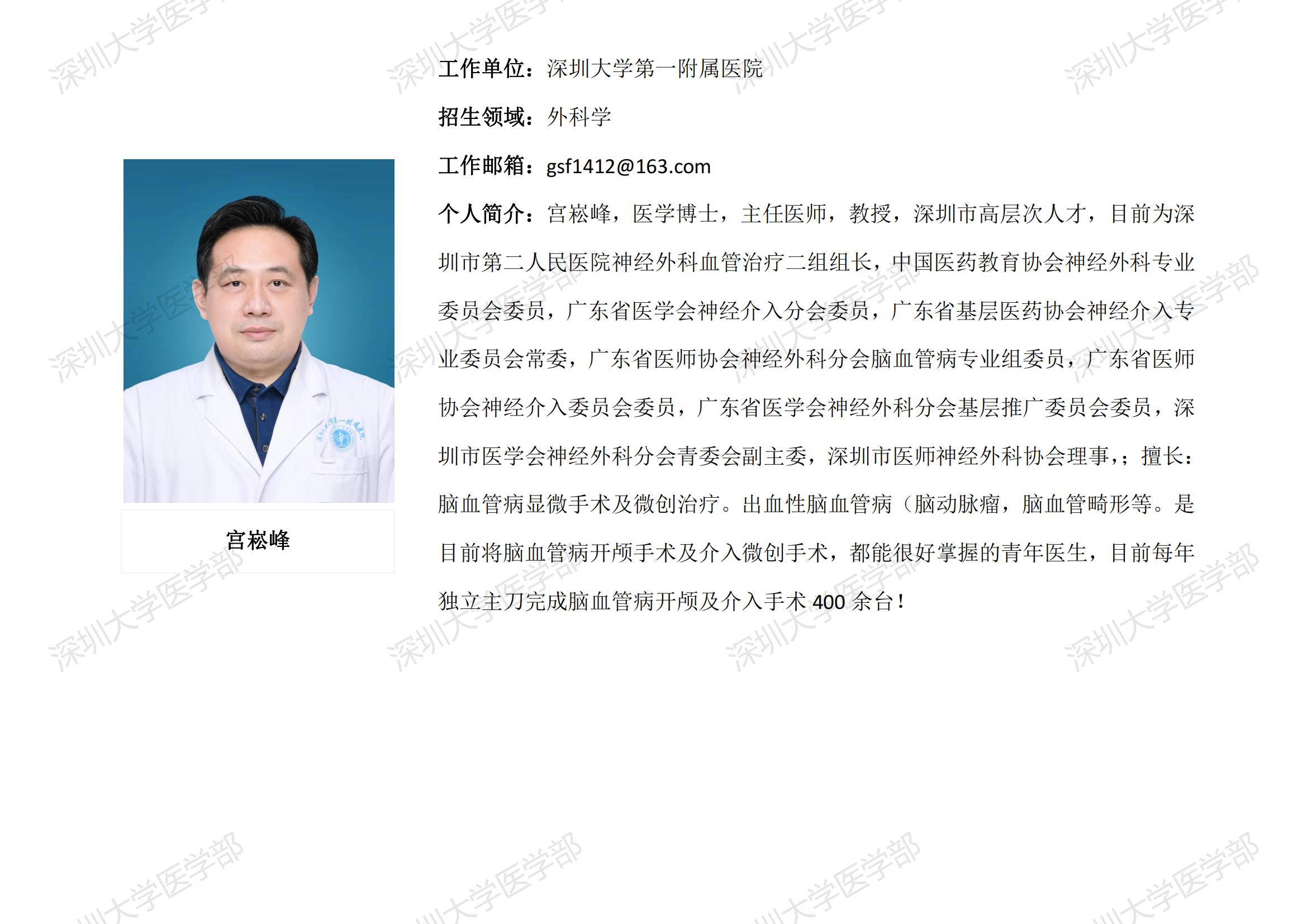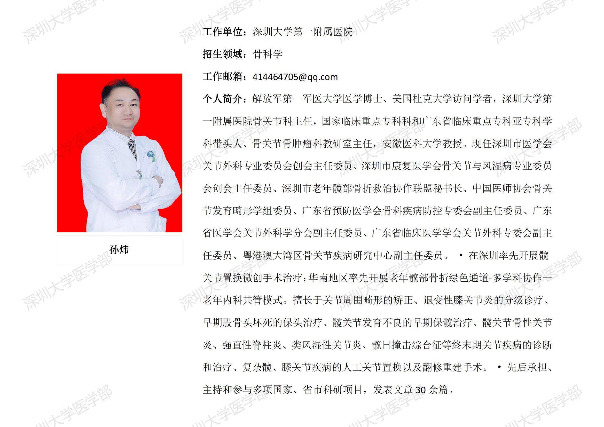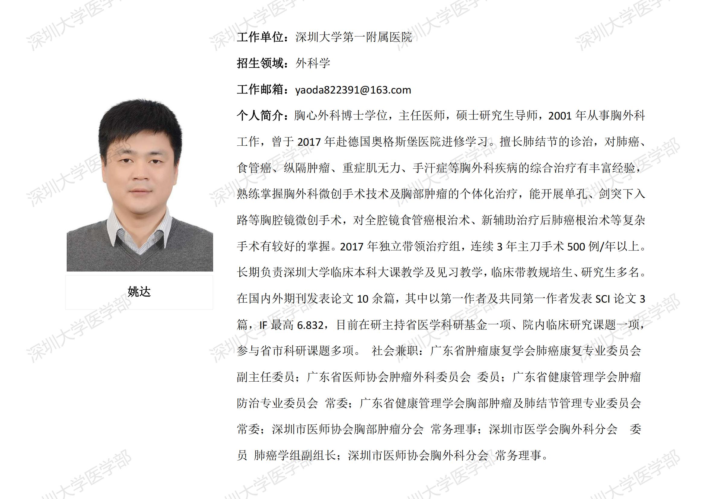 球盟会QMH(中国)官方网站 临床医学专业硕士研究生导师简介--深圳大学第一附属医院