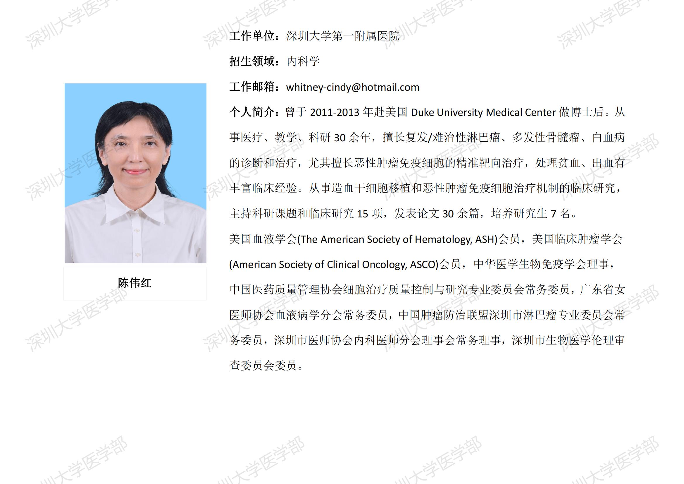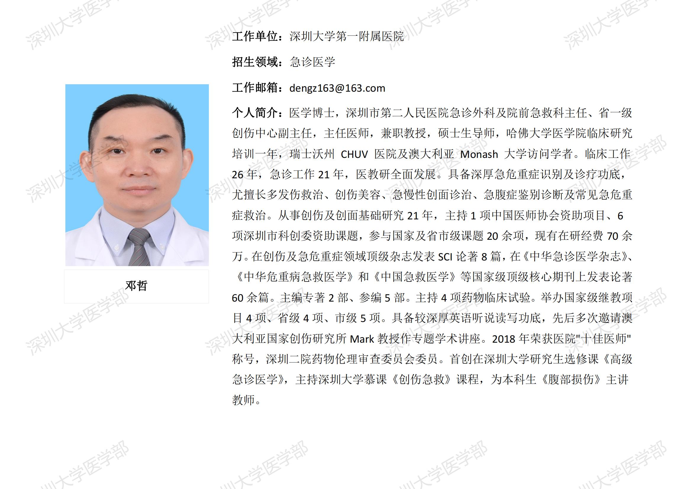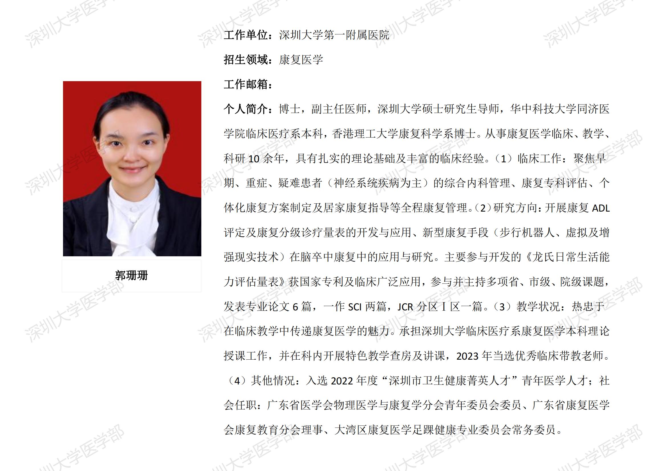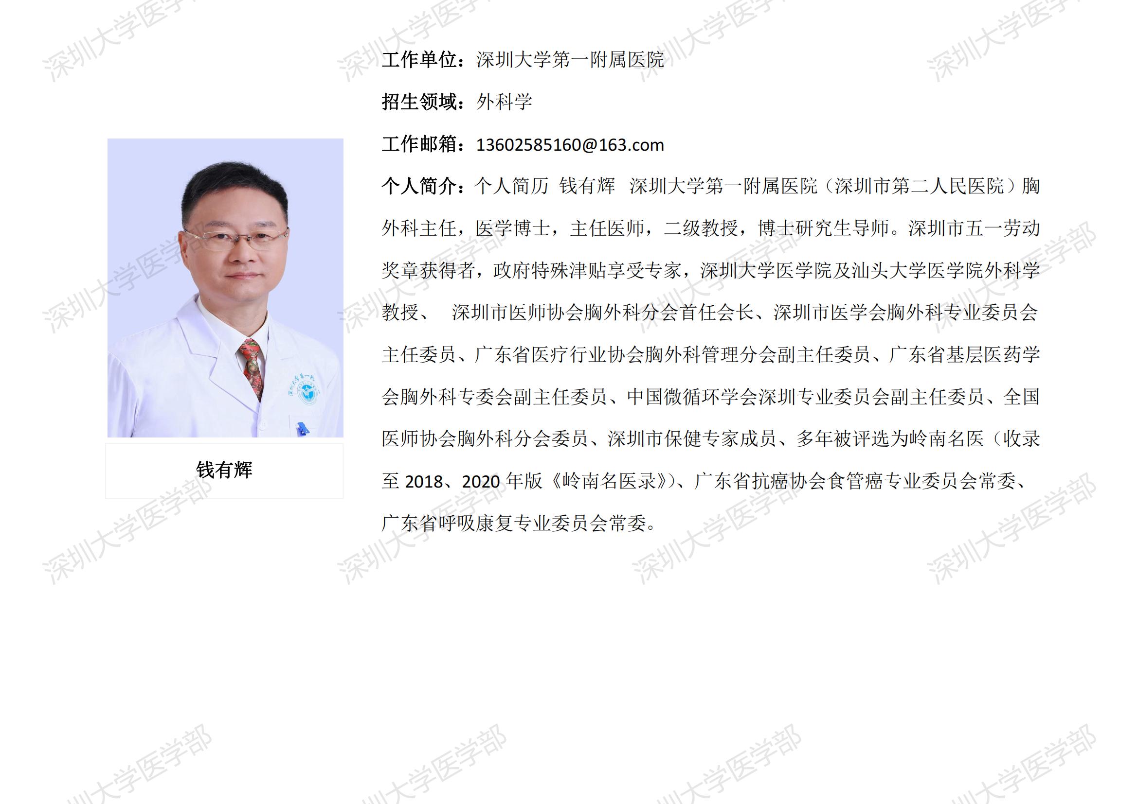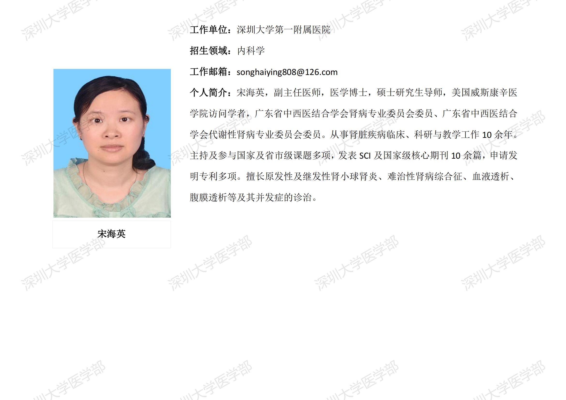 球盟会QMH(中国)官方网站 临床医学专业硕士研究生导师简介--深圳大学第一附属医院