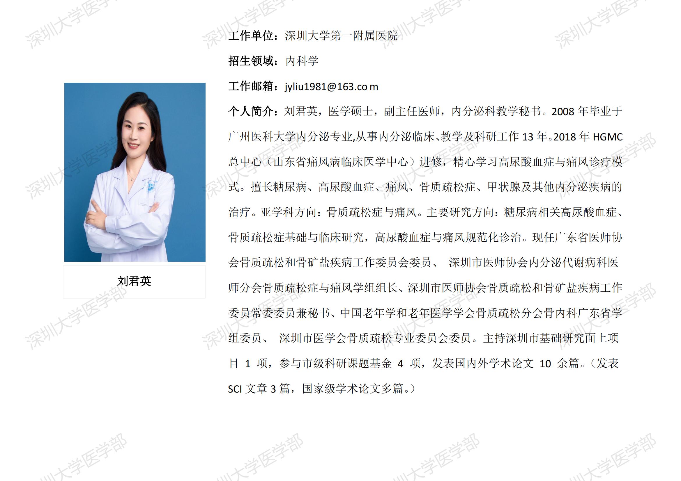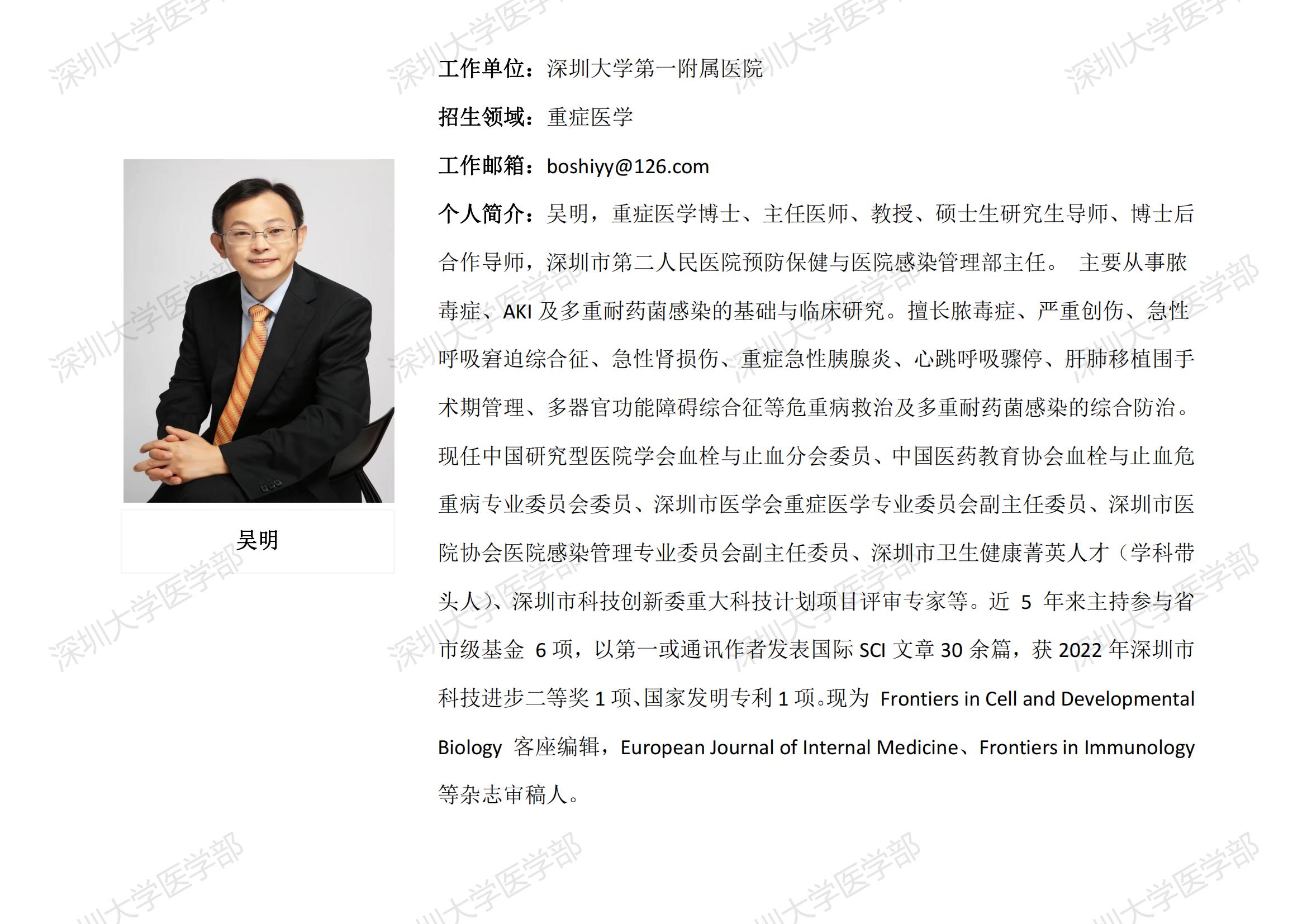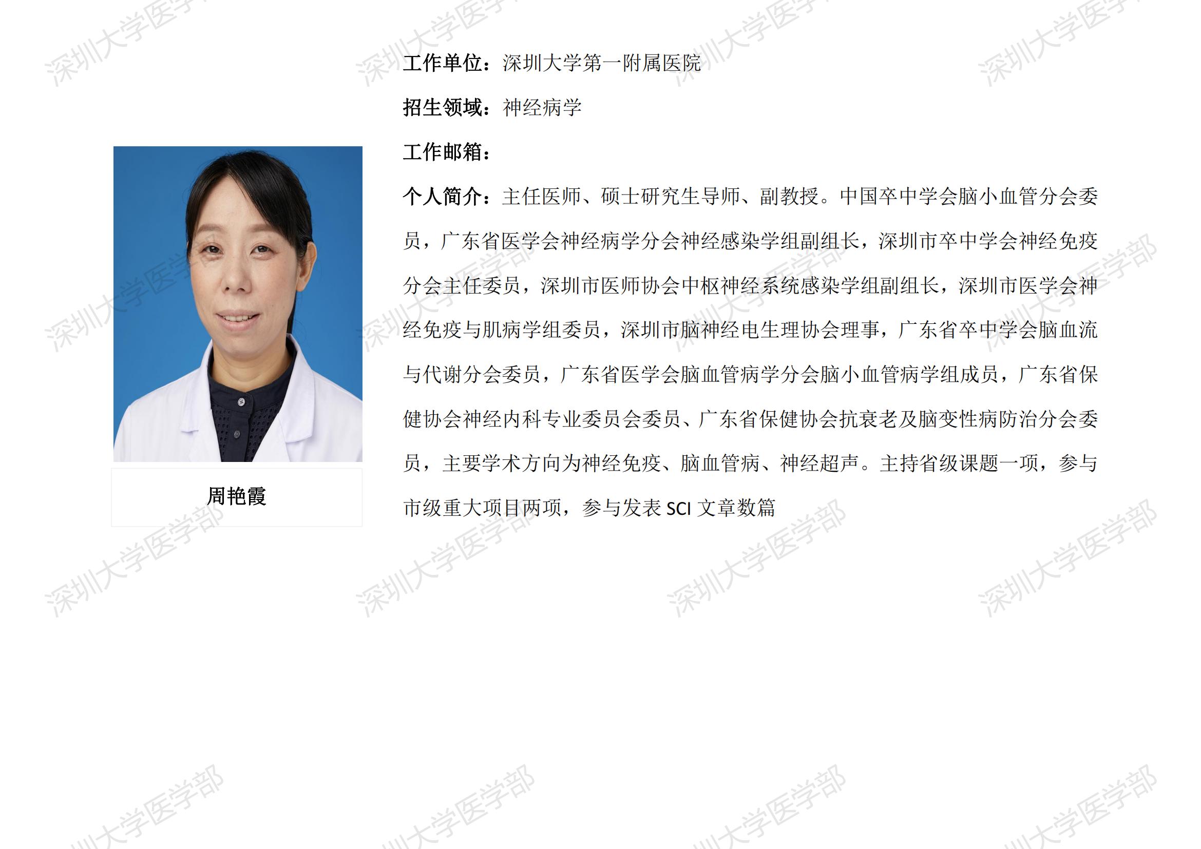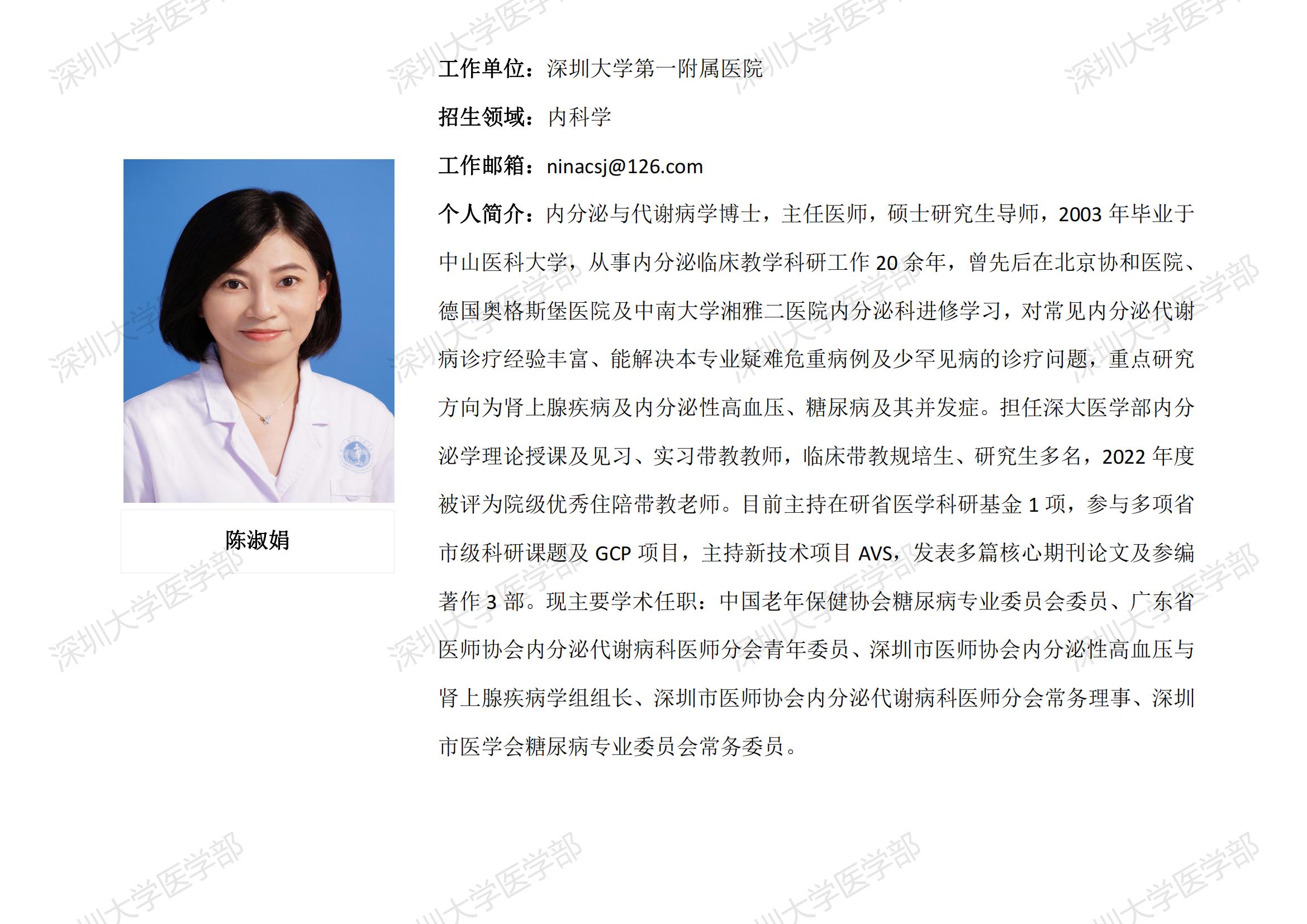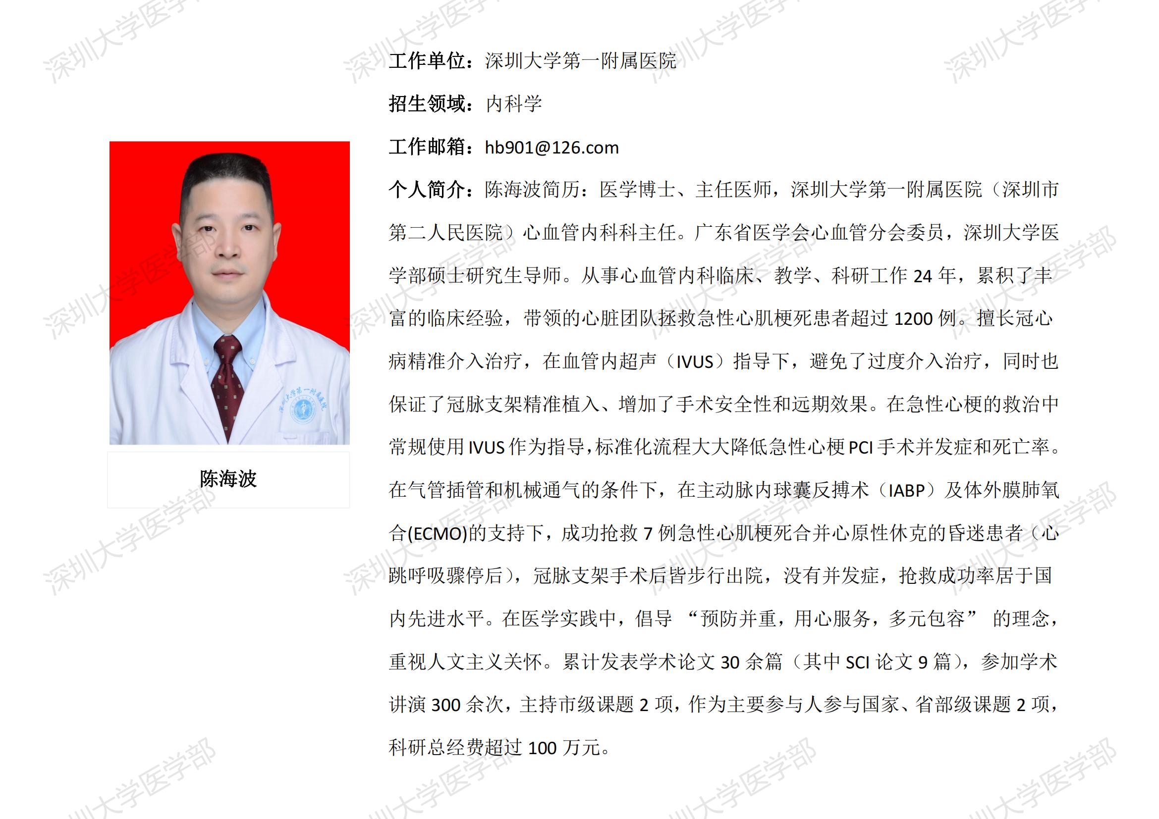 球盟会QMH(中国)官方网站 临床医学专业硕士研究生导师简介--深圳大学第一附属医院