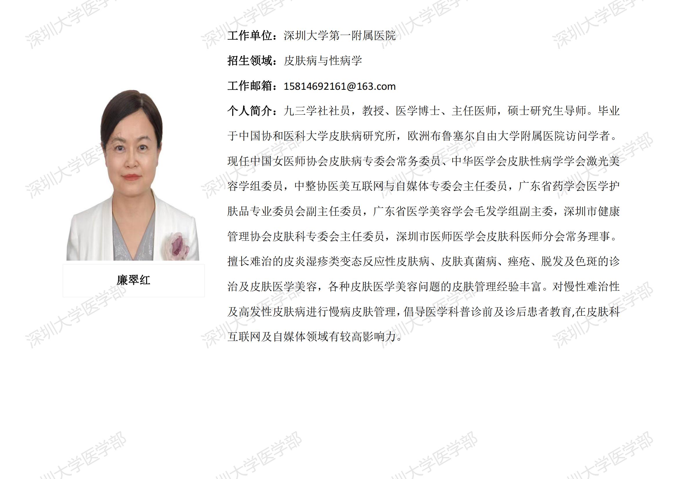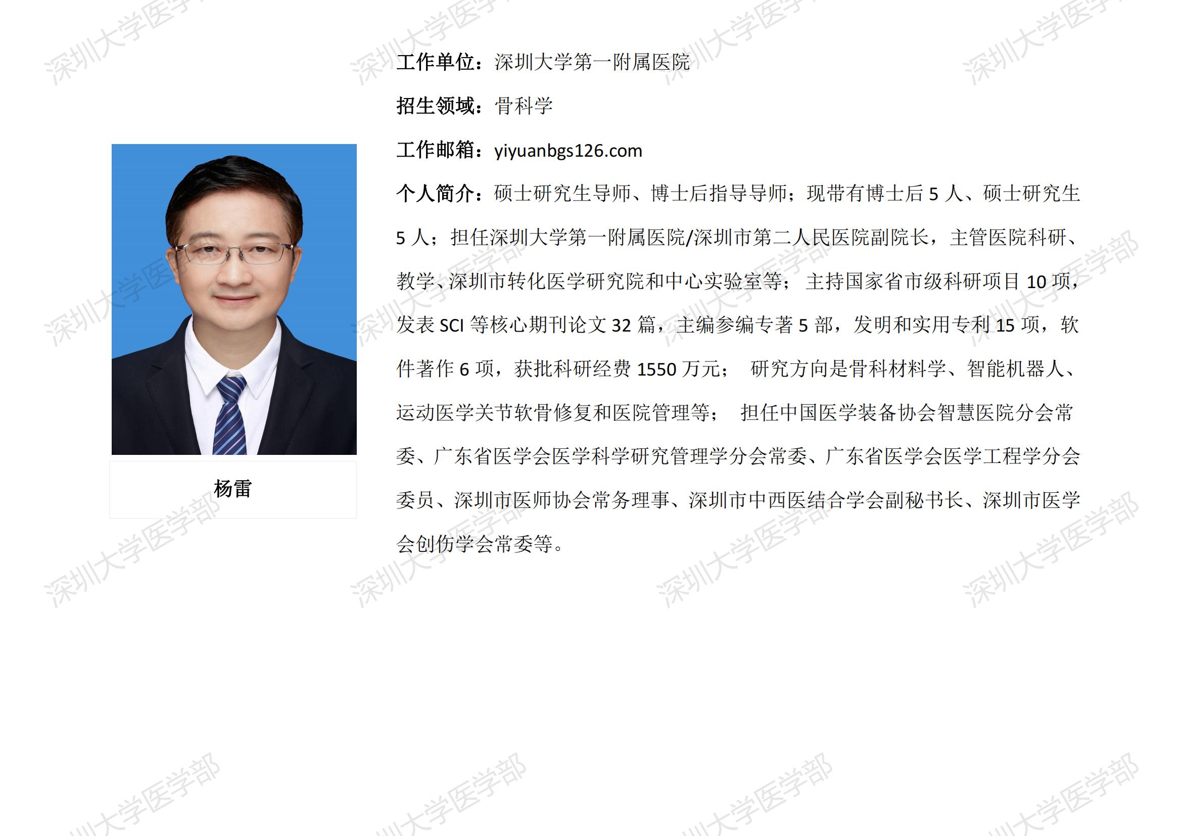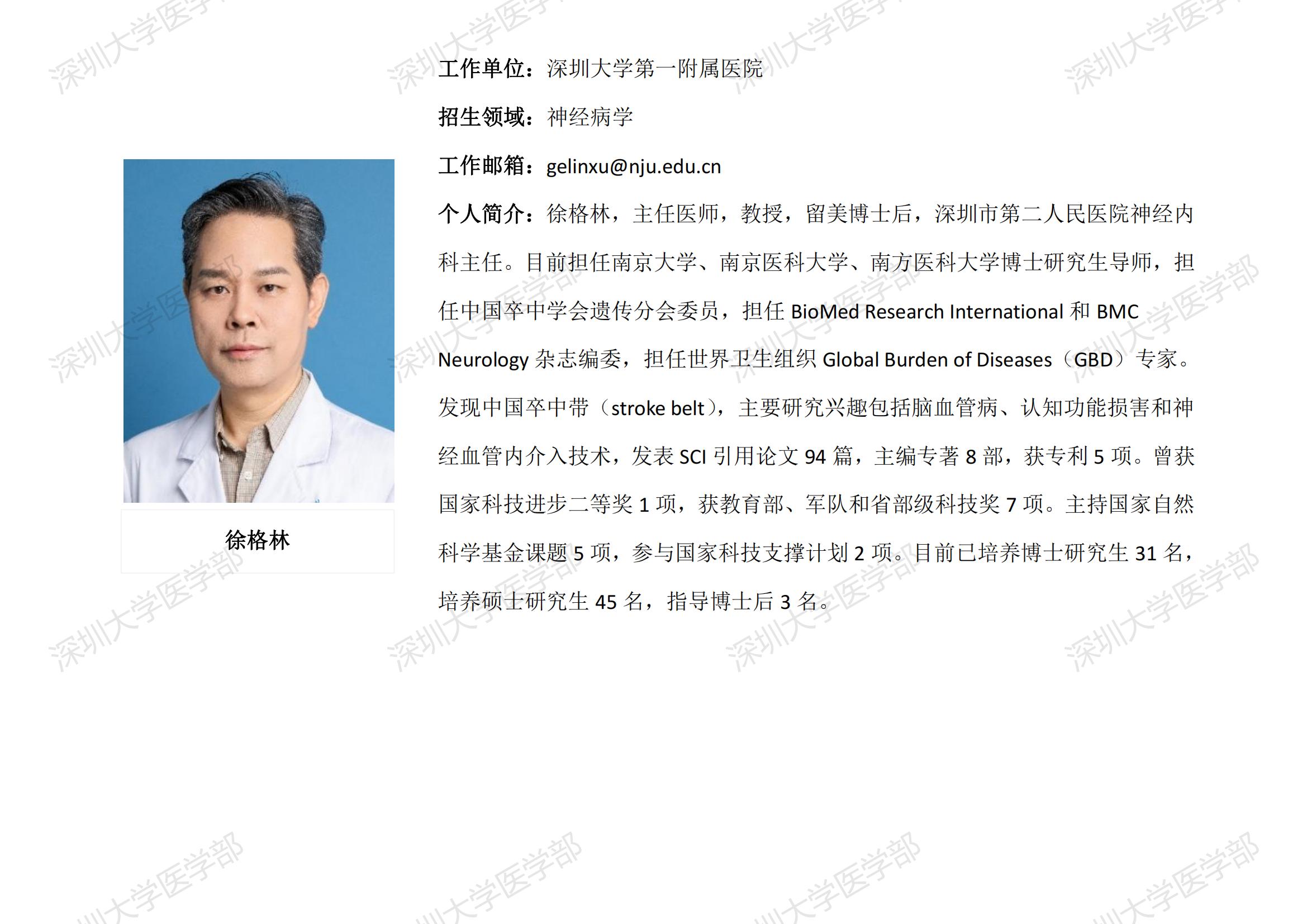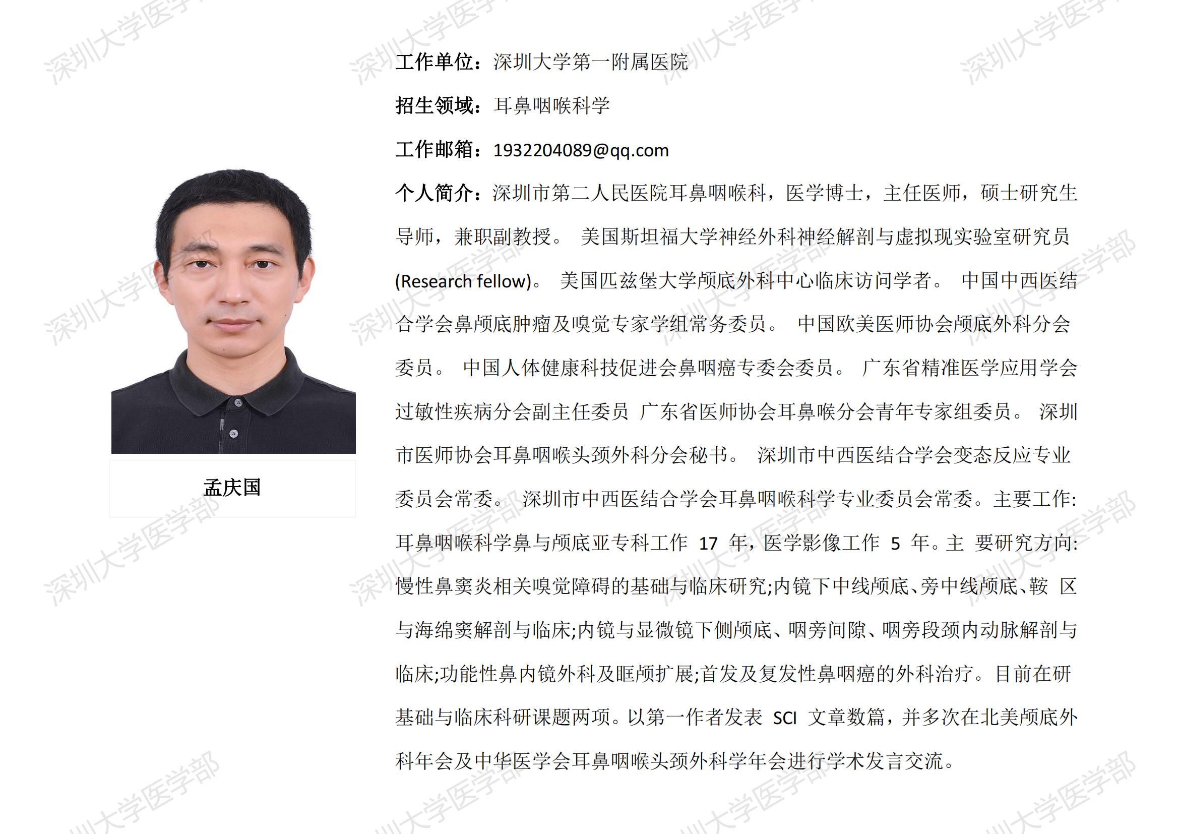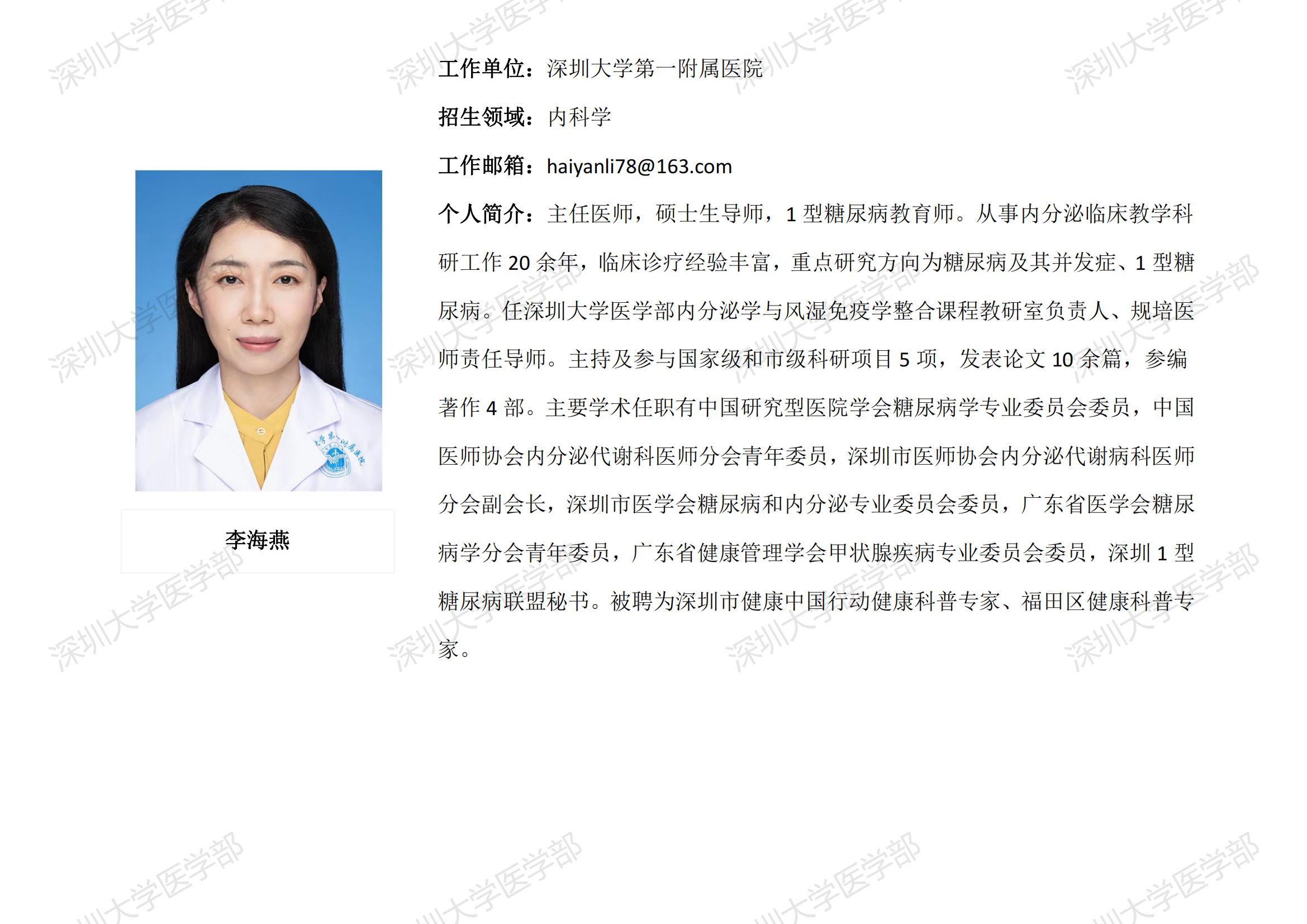球盟会QMH(中国)官方网站 临床医学专业硕士研究生导师简介--深圳大学第一附属医院