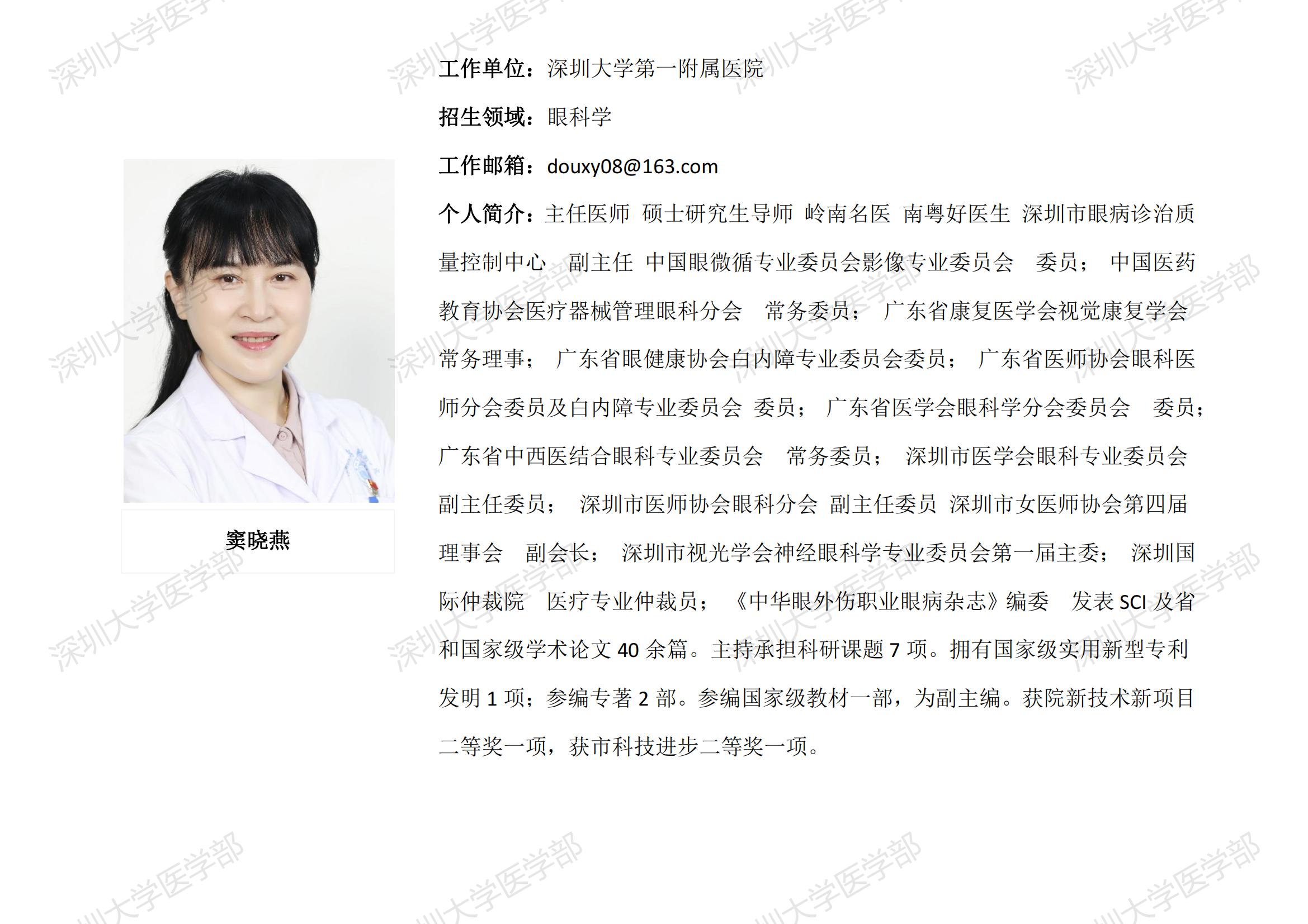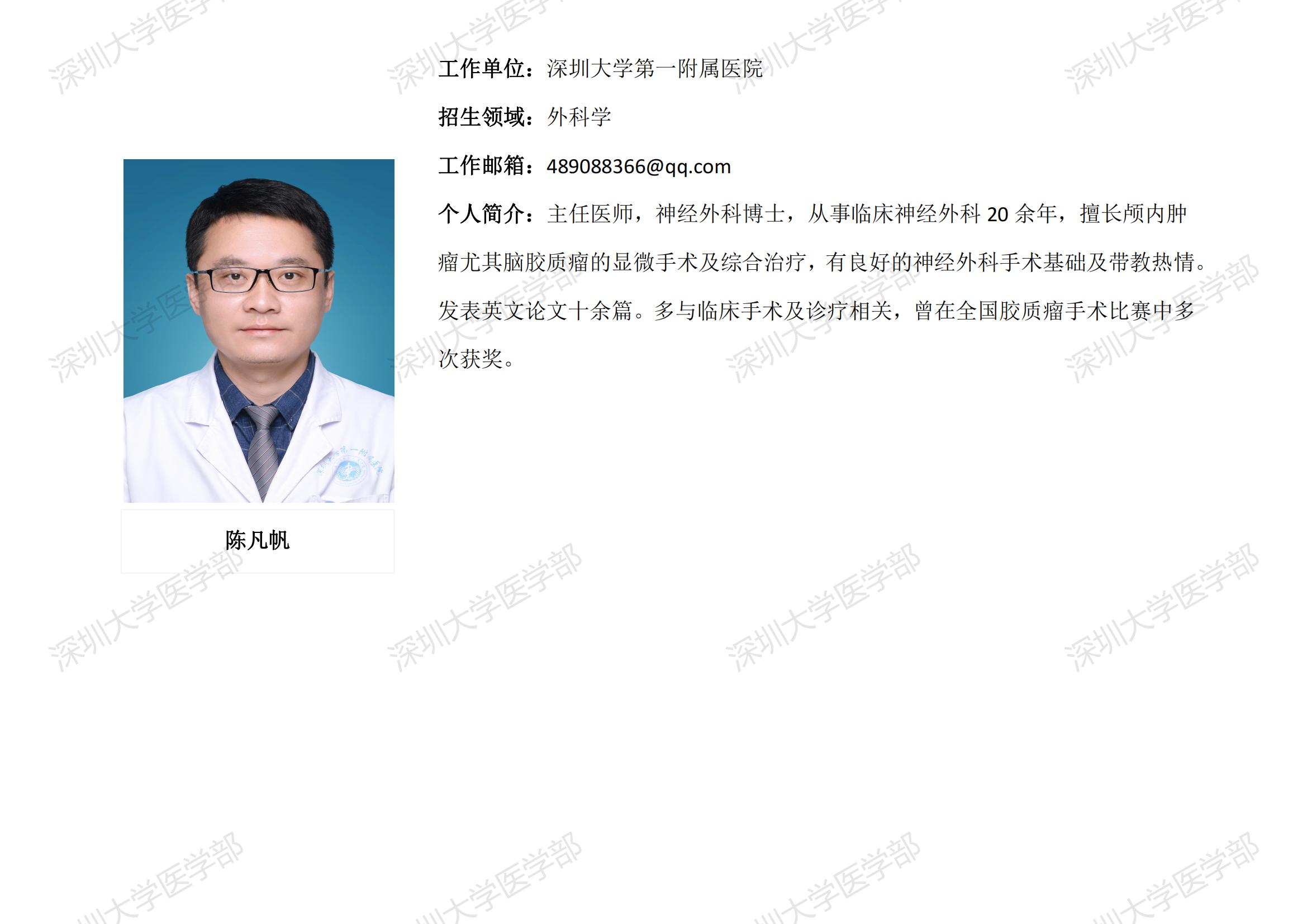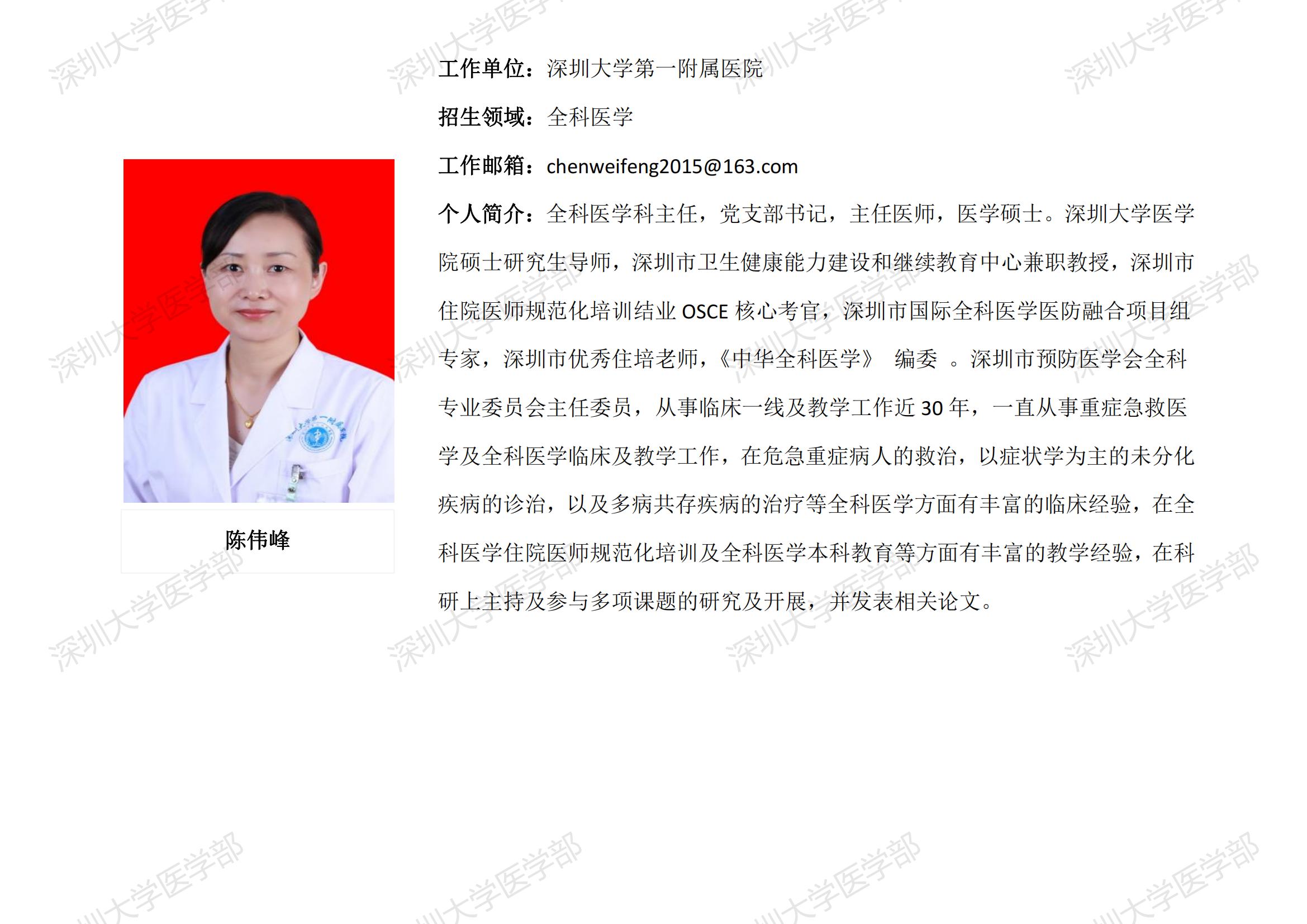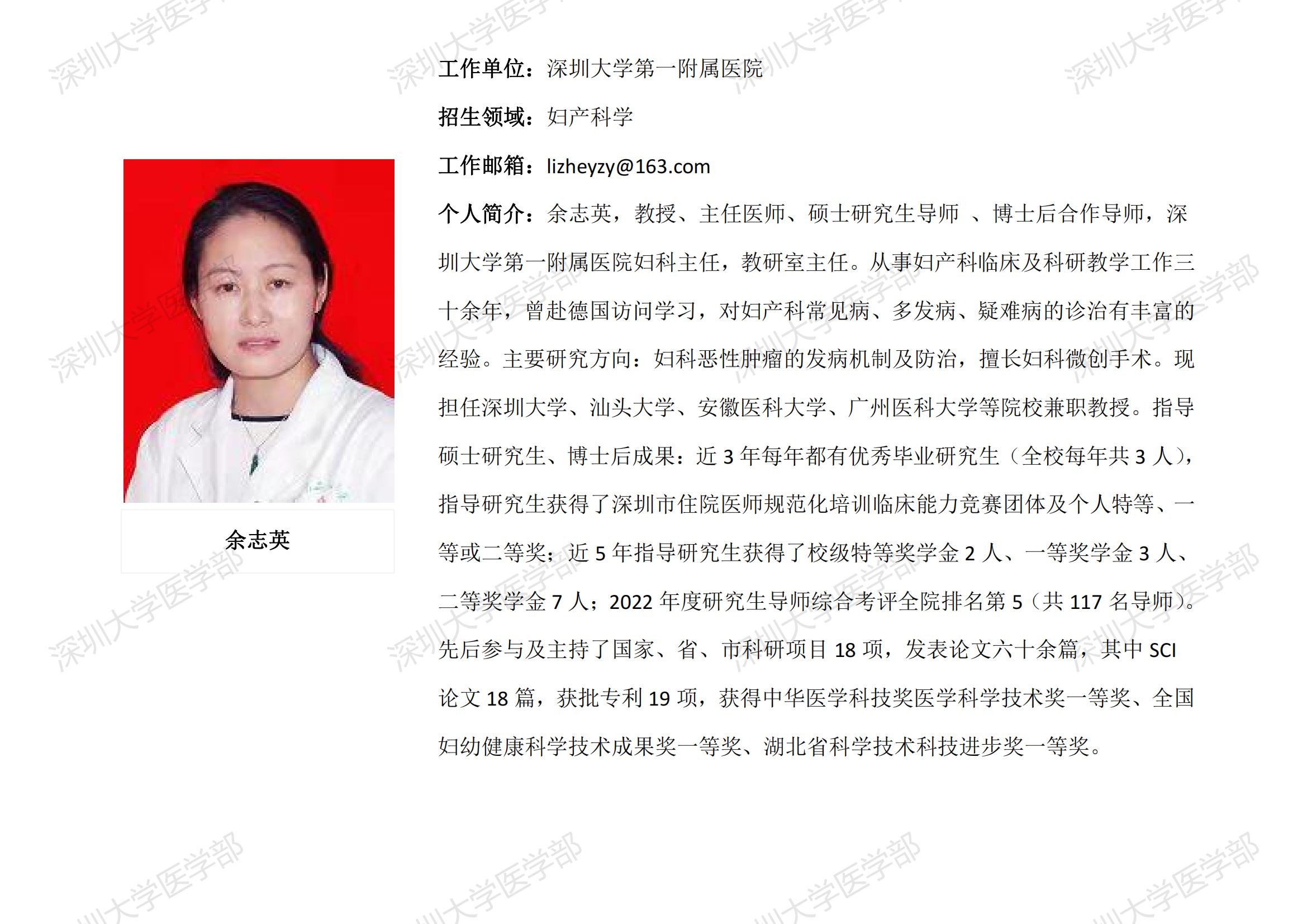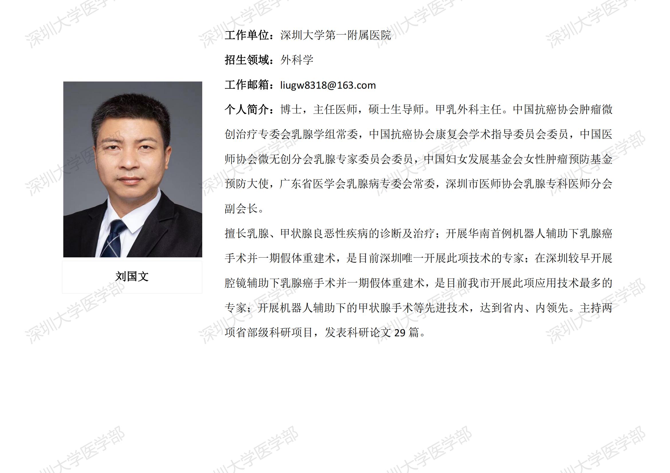 球盟会QMH(中国)官方网站 临床医学专业硕士研究生导师简介--深圳大学第一附属医院