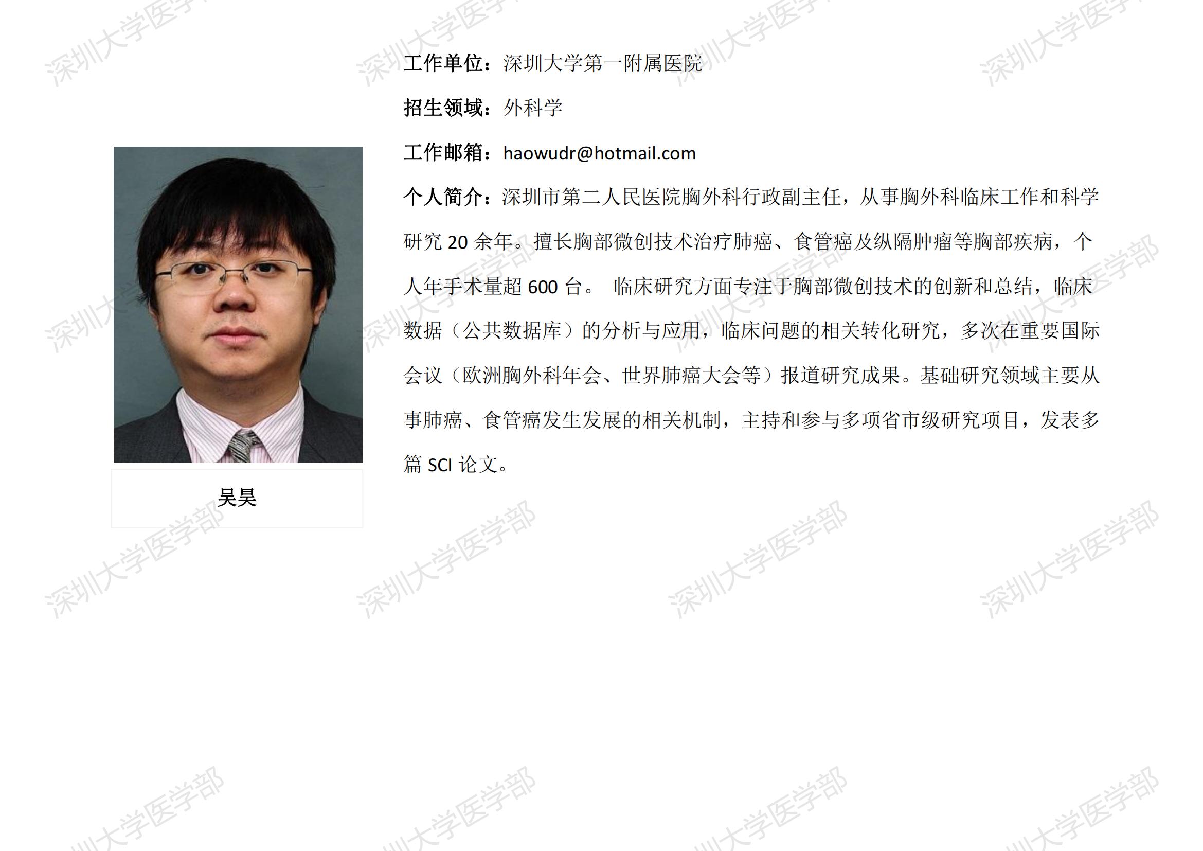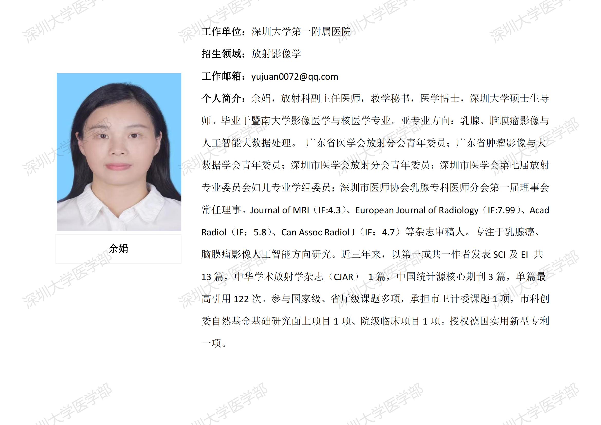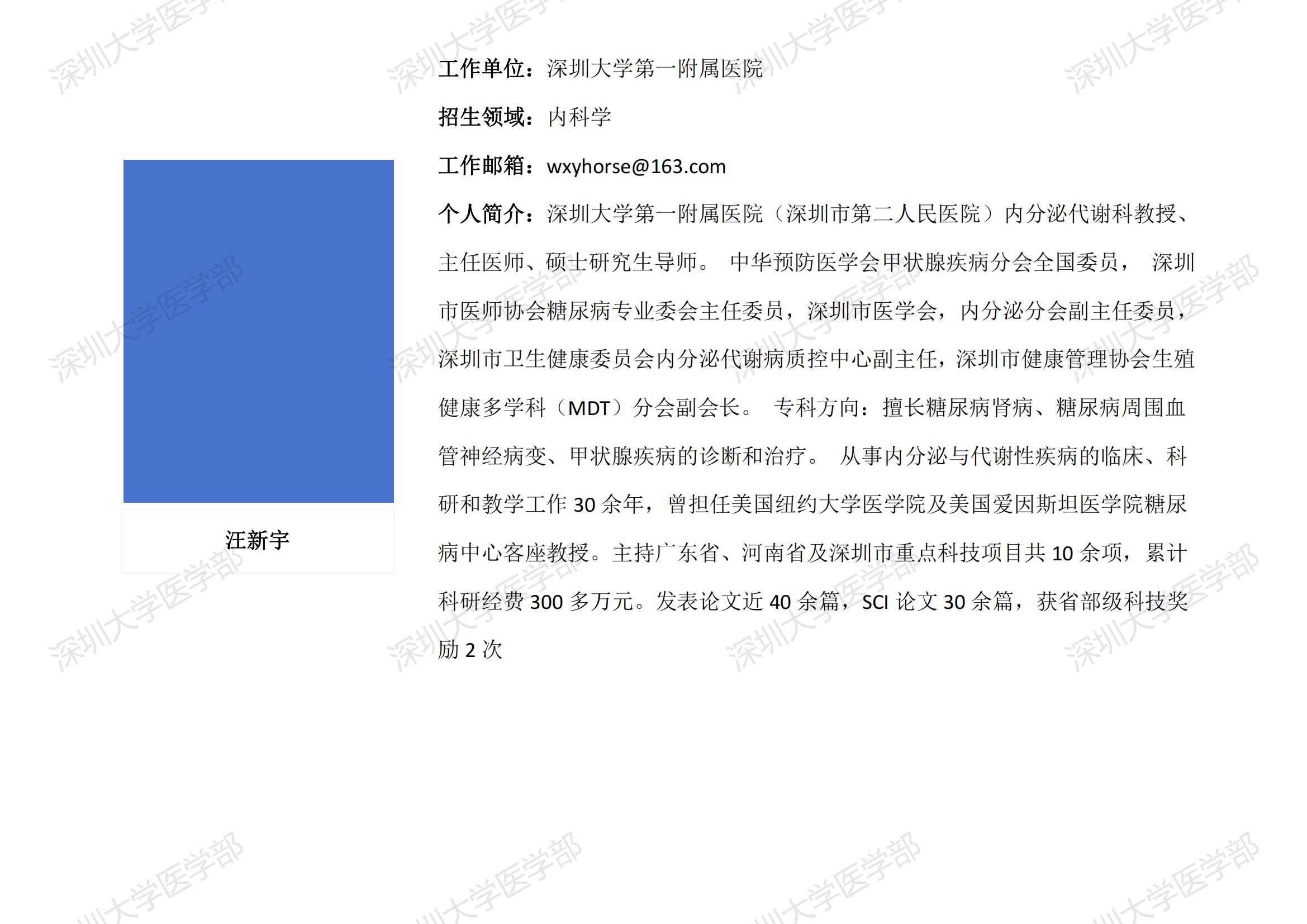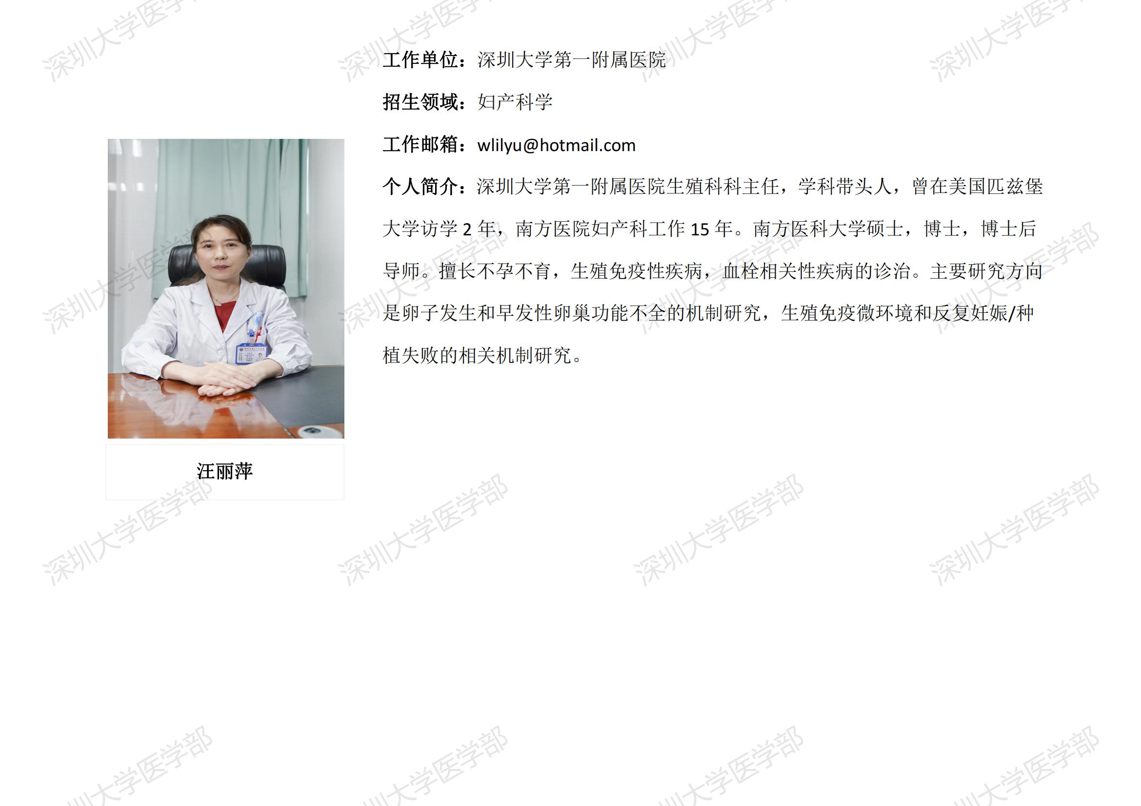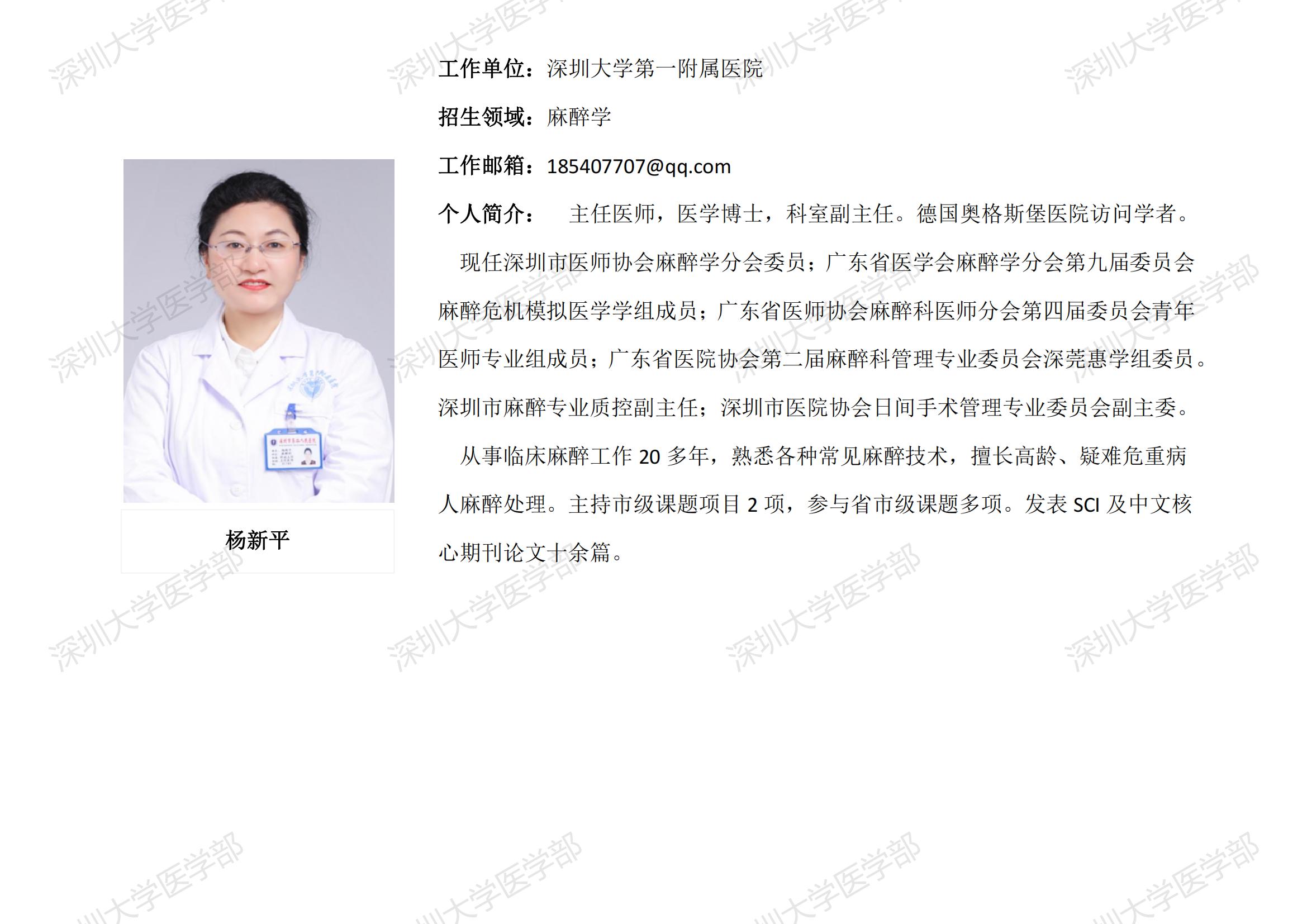 球盟会QMH(中国)官方网站 临床医学专业硕士研究生导师简介--深圳大学第一附属医院