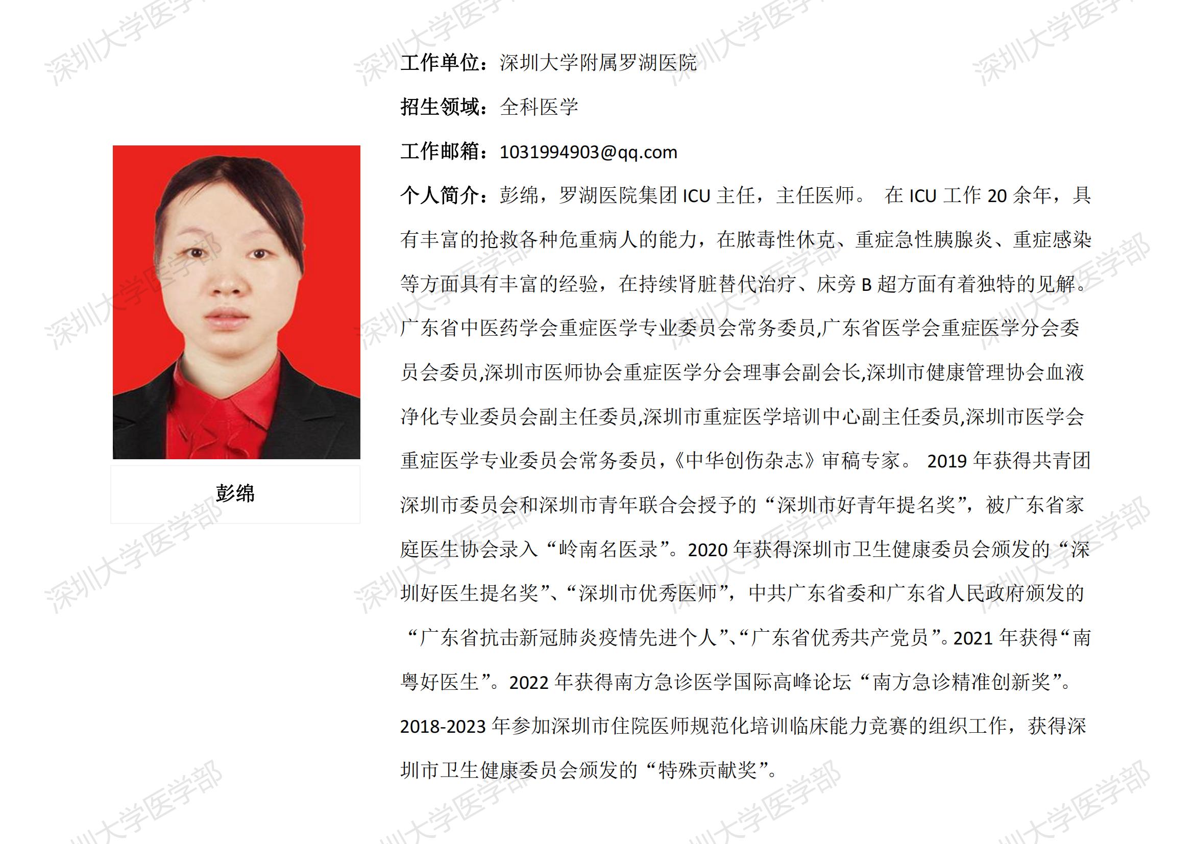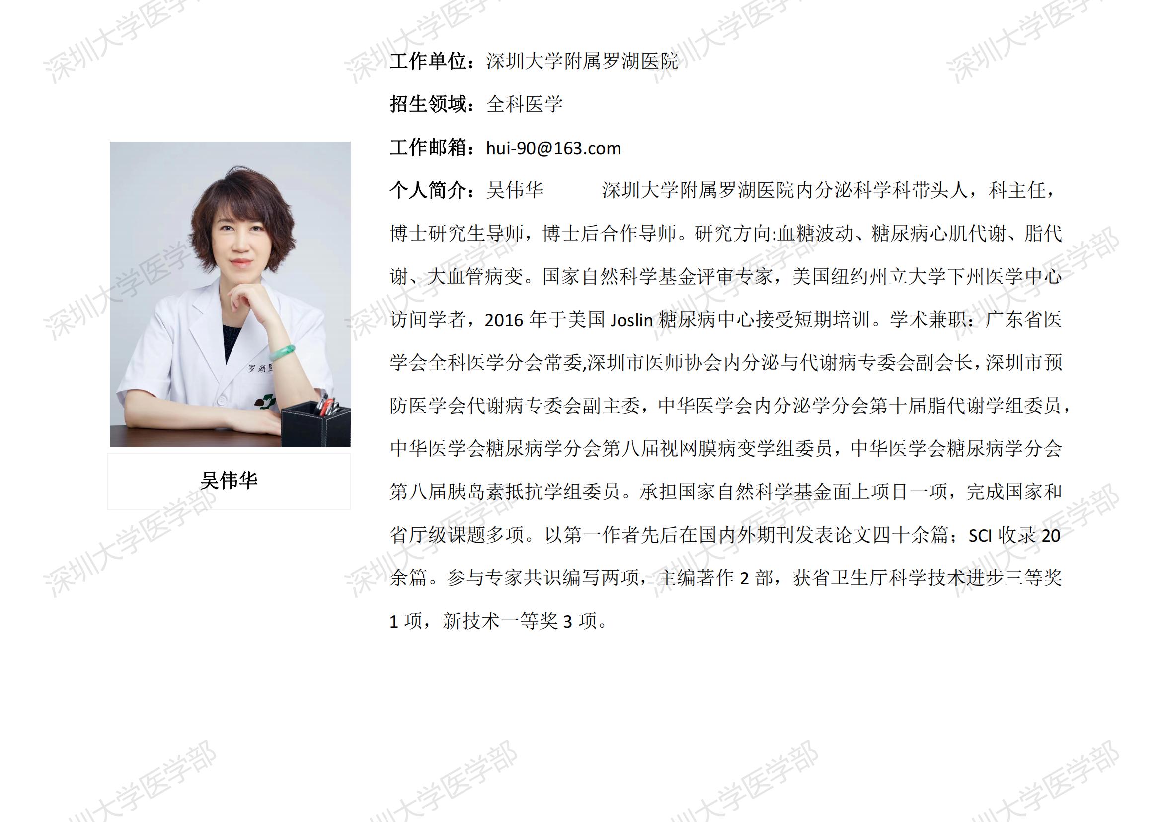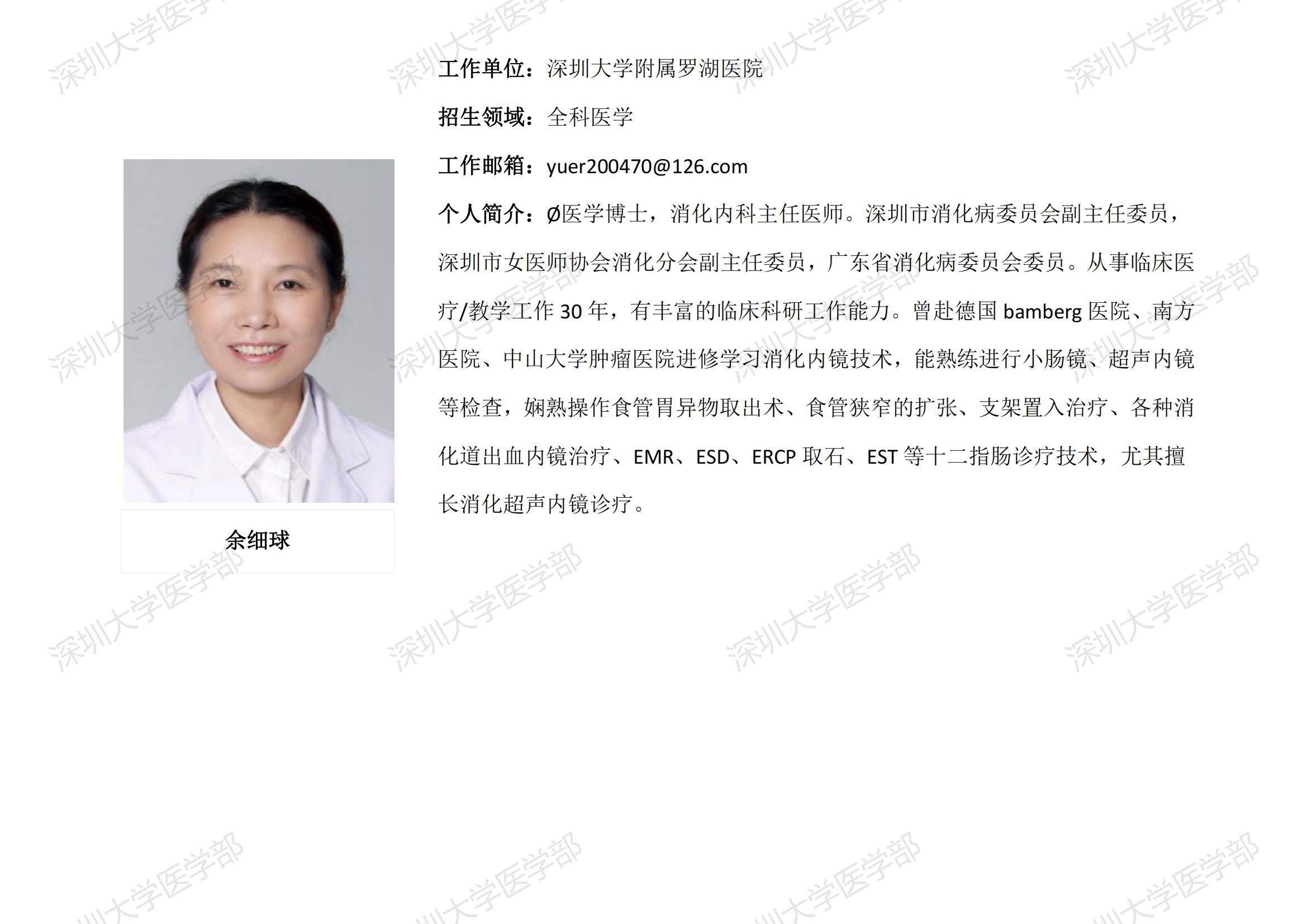 球盟会QMH(中国)官方网站 临床医学专业硕士研究生导师简介--深圳大学附属罗湖医院