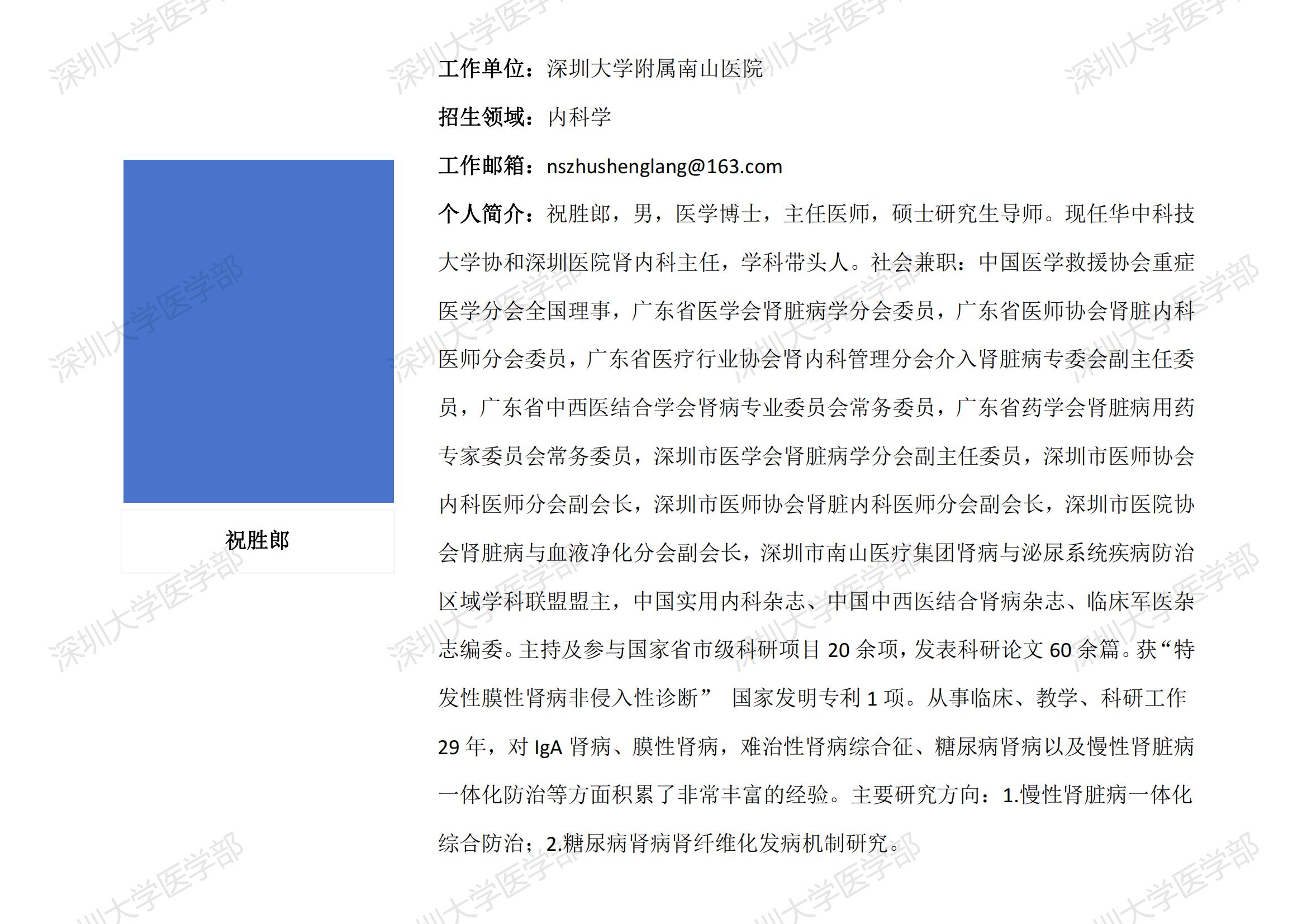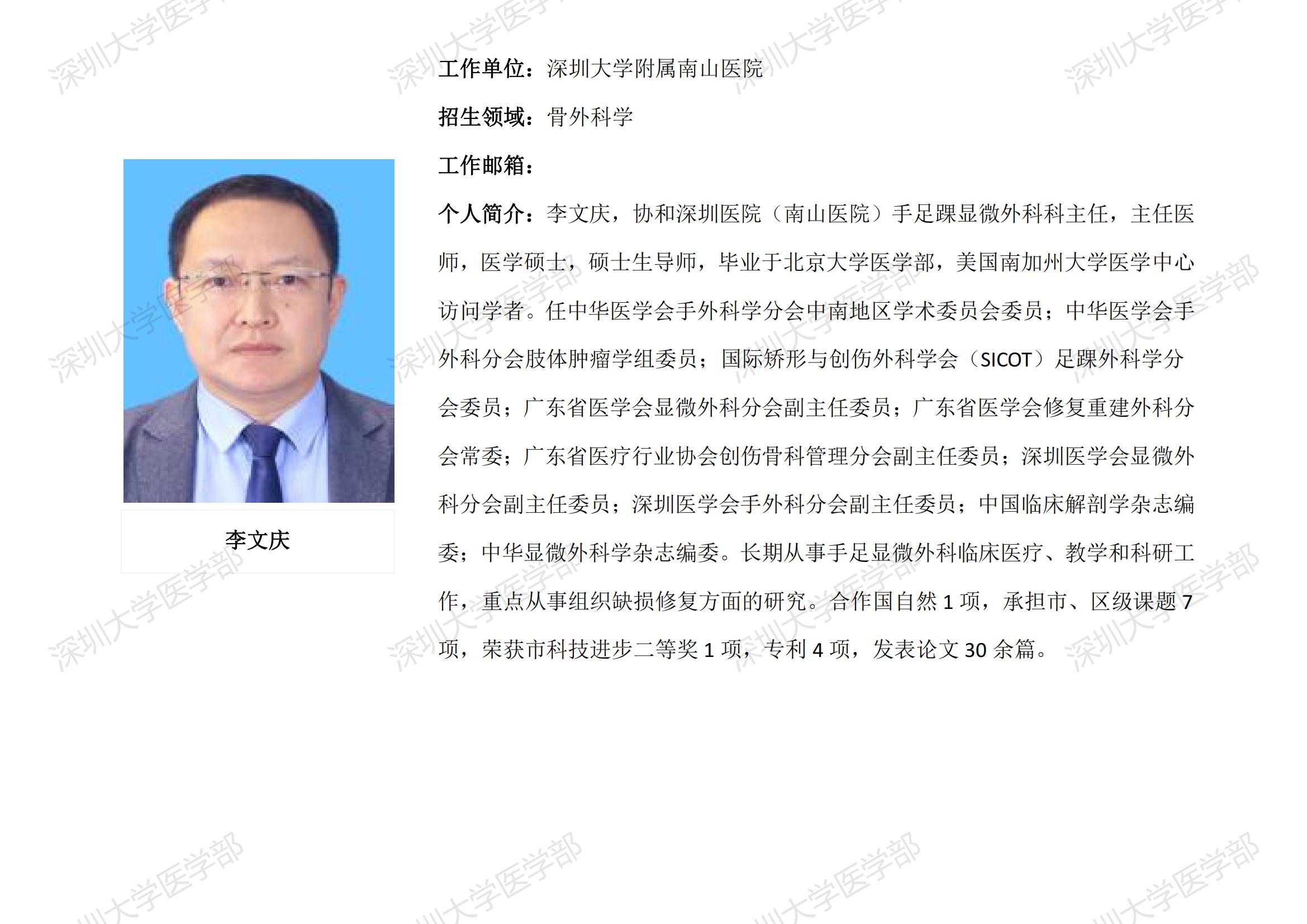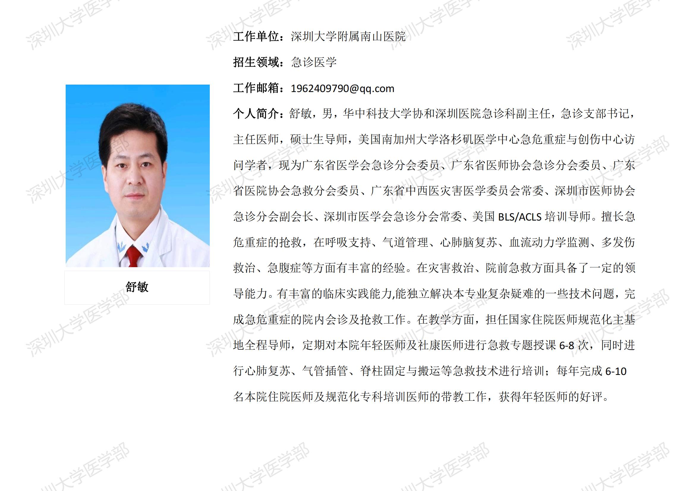 球盟会QMH(中国)官方网站 临床医学专业硕士研究生导师简介--深圳大学附属南山医院