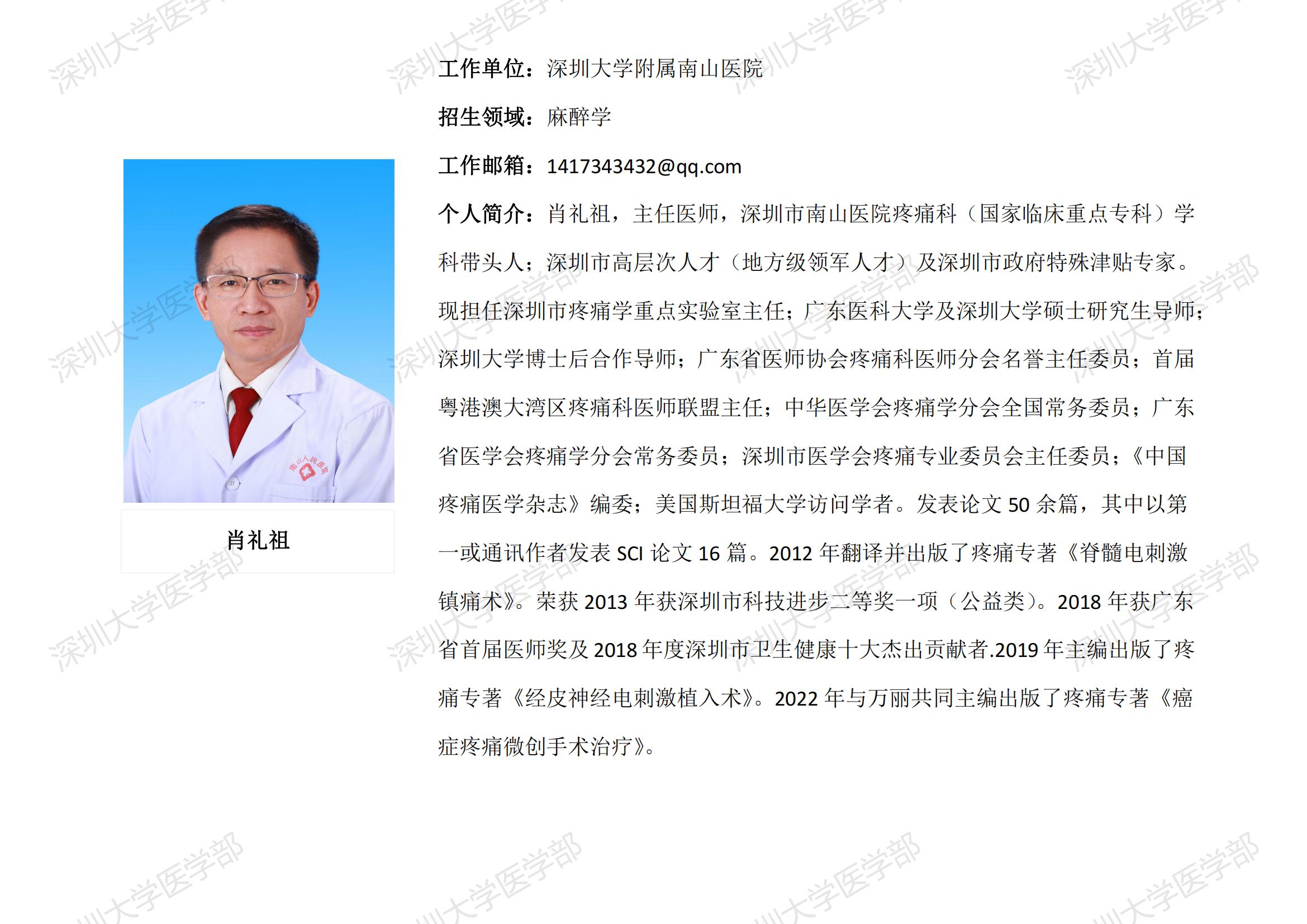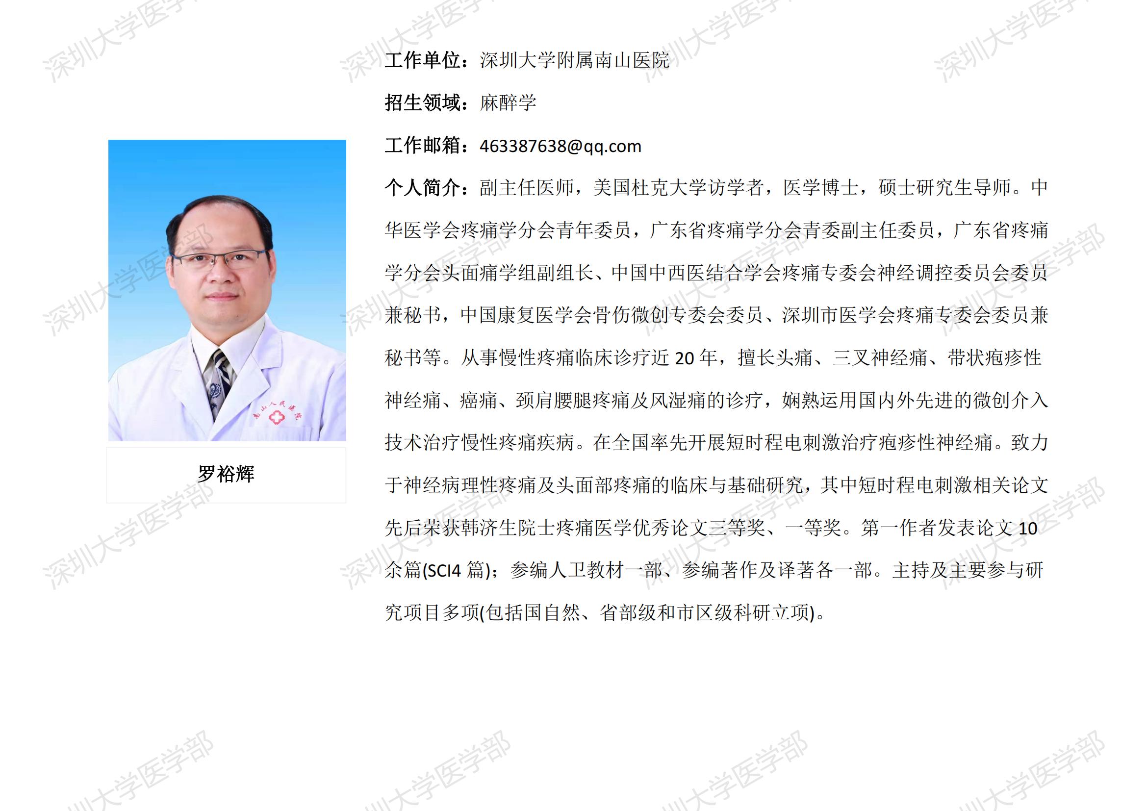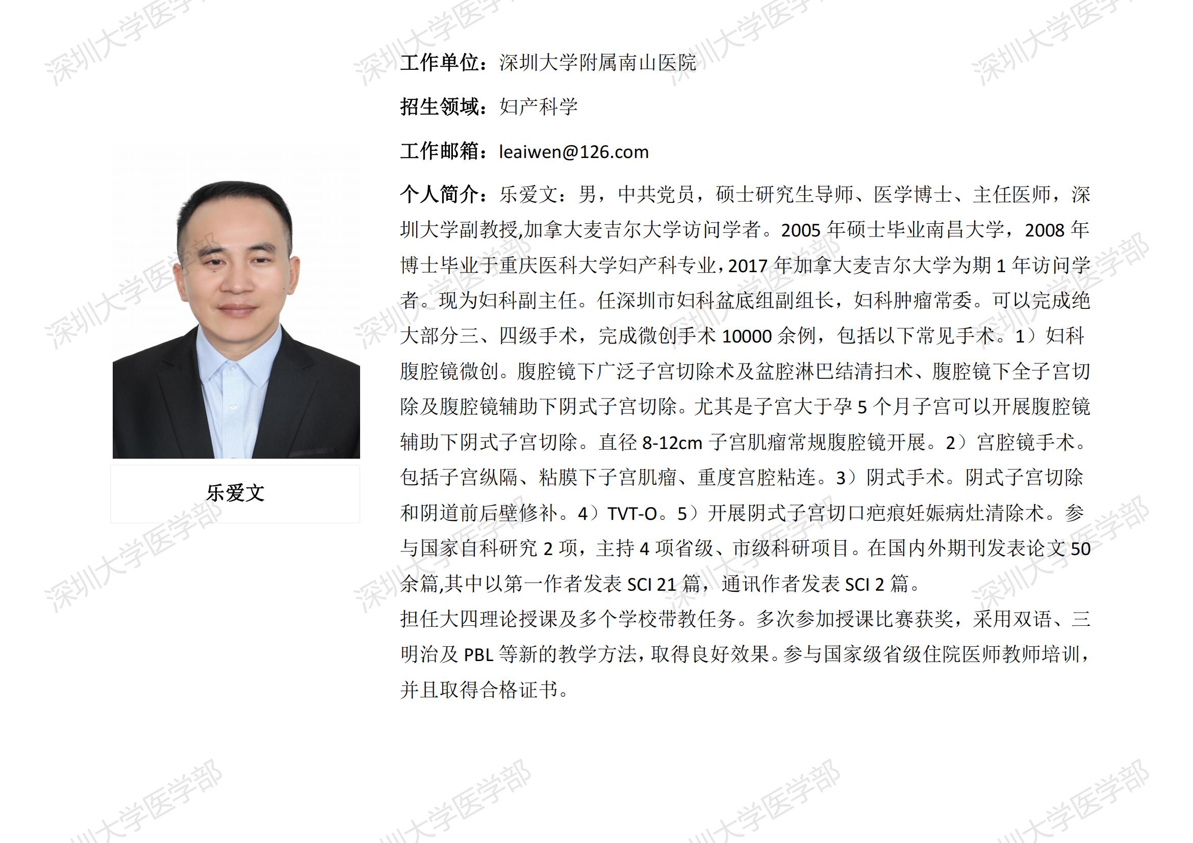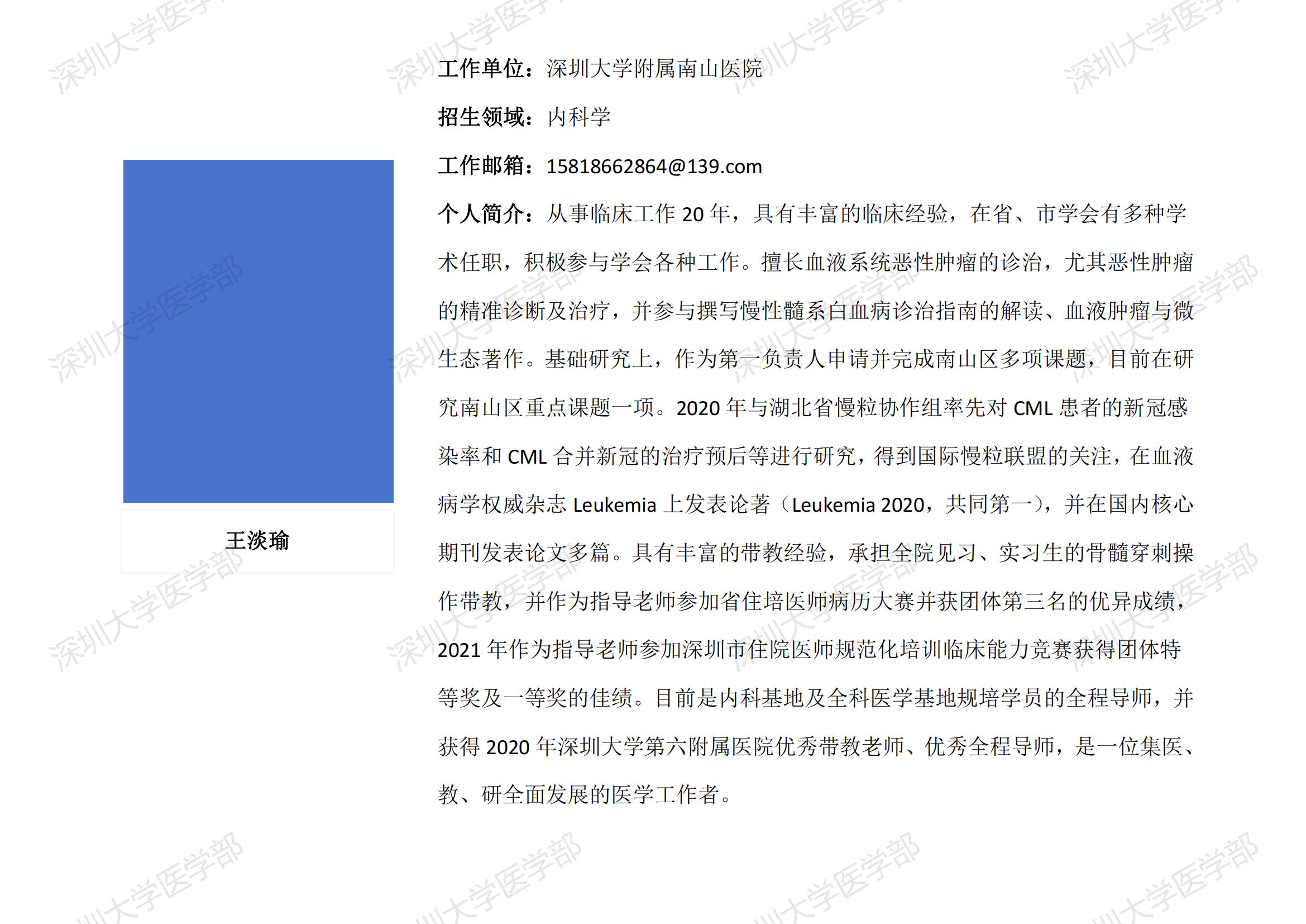 球盟会QMH(中国)官方网站 临床医学专业硕士研究生导师简介--深圳大学附属南山医院