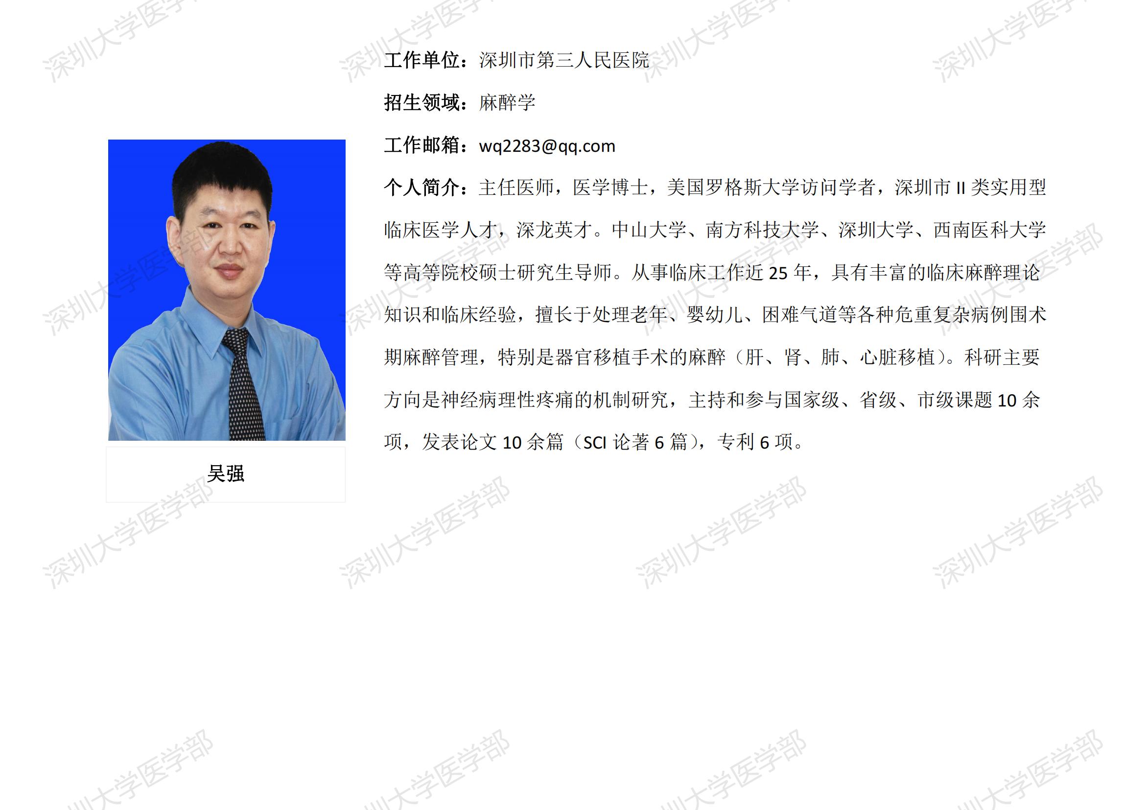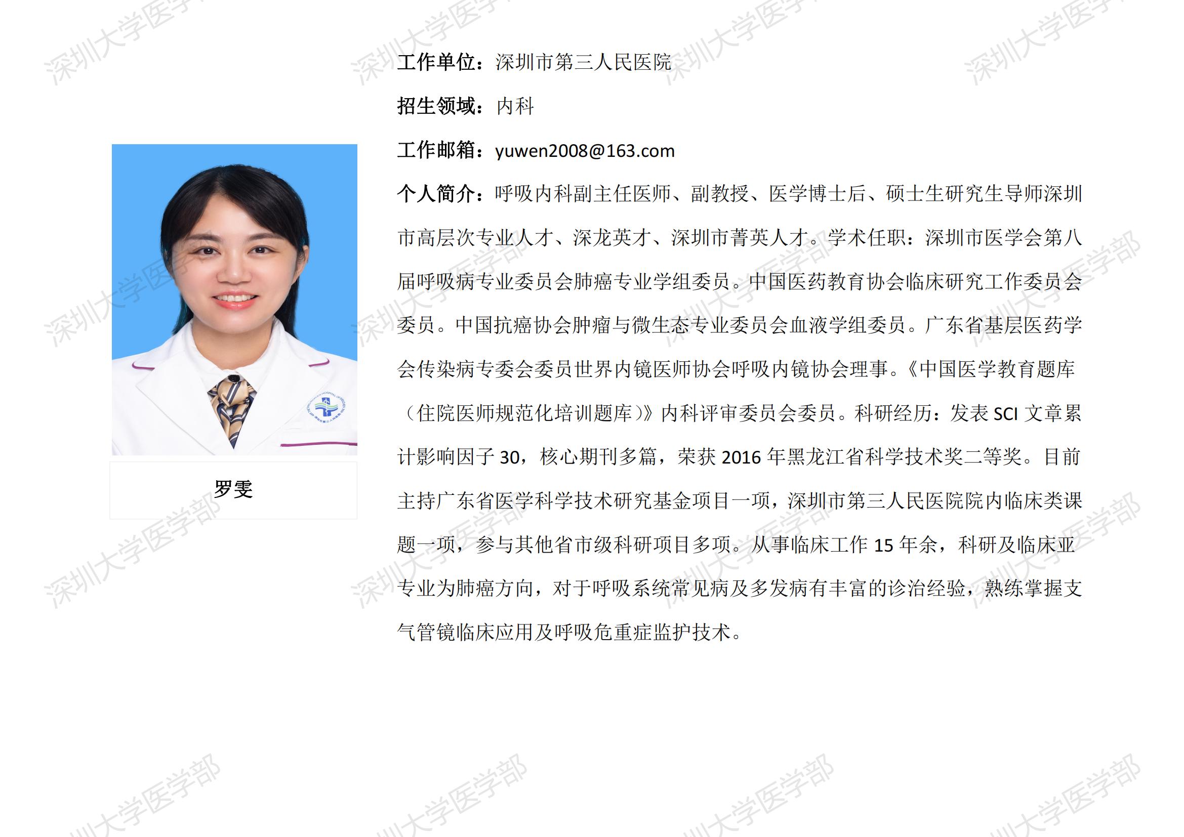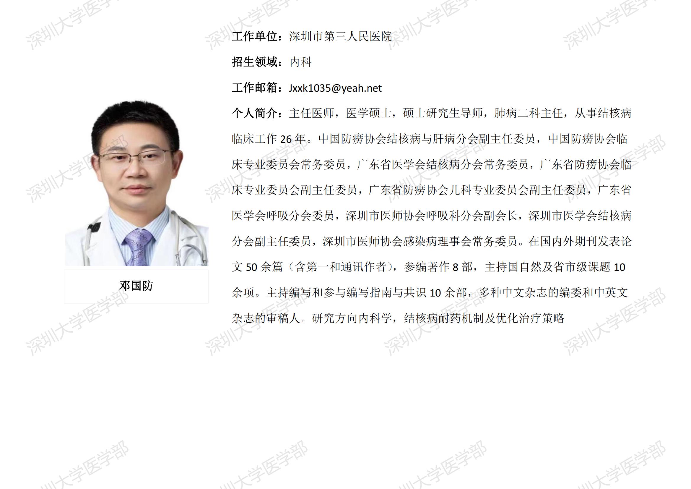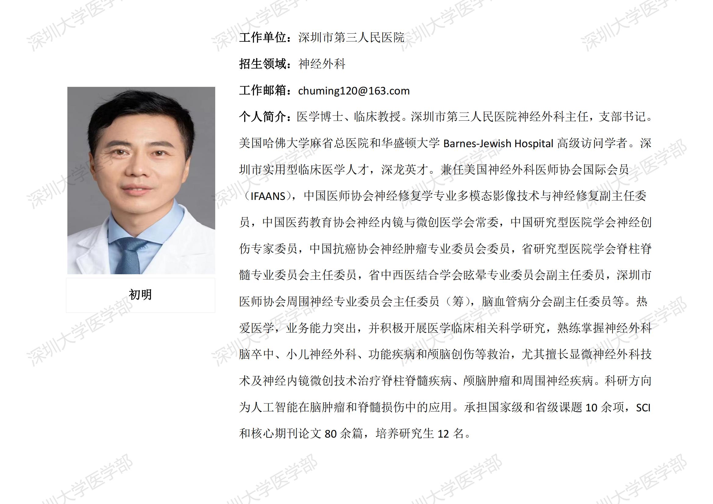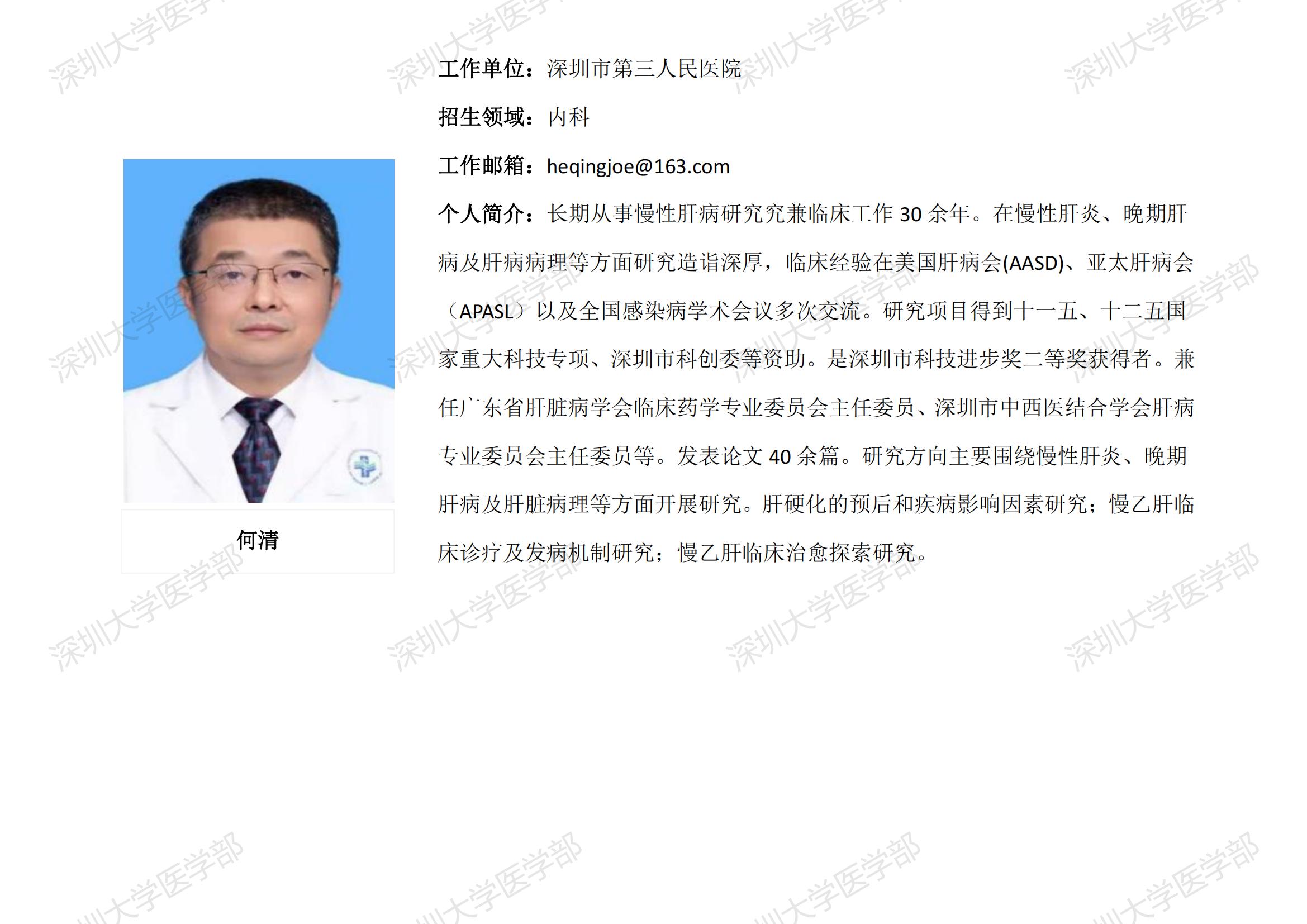 球盟会QMH(中国)官方网站 临床医学专业硕士研究生导师简介--深圳市第三人民医院