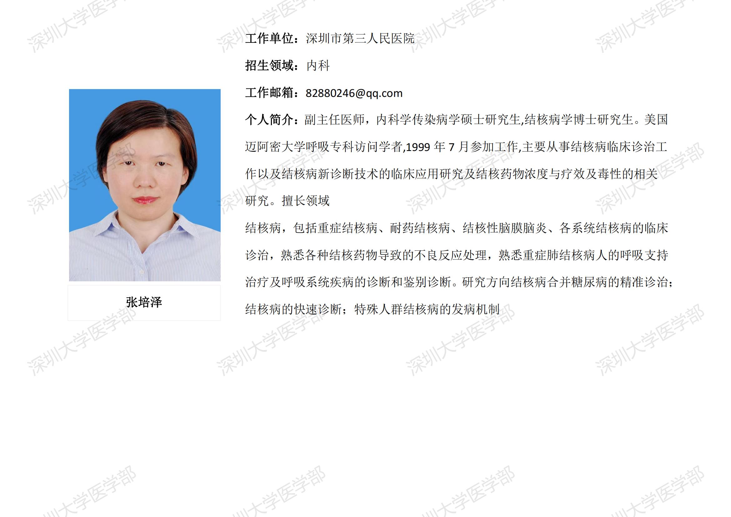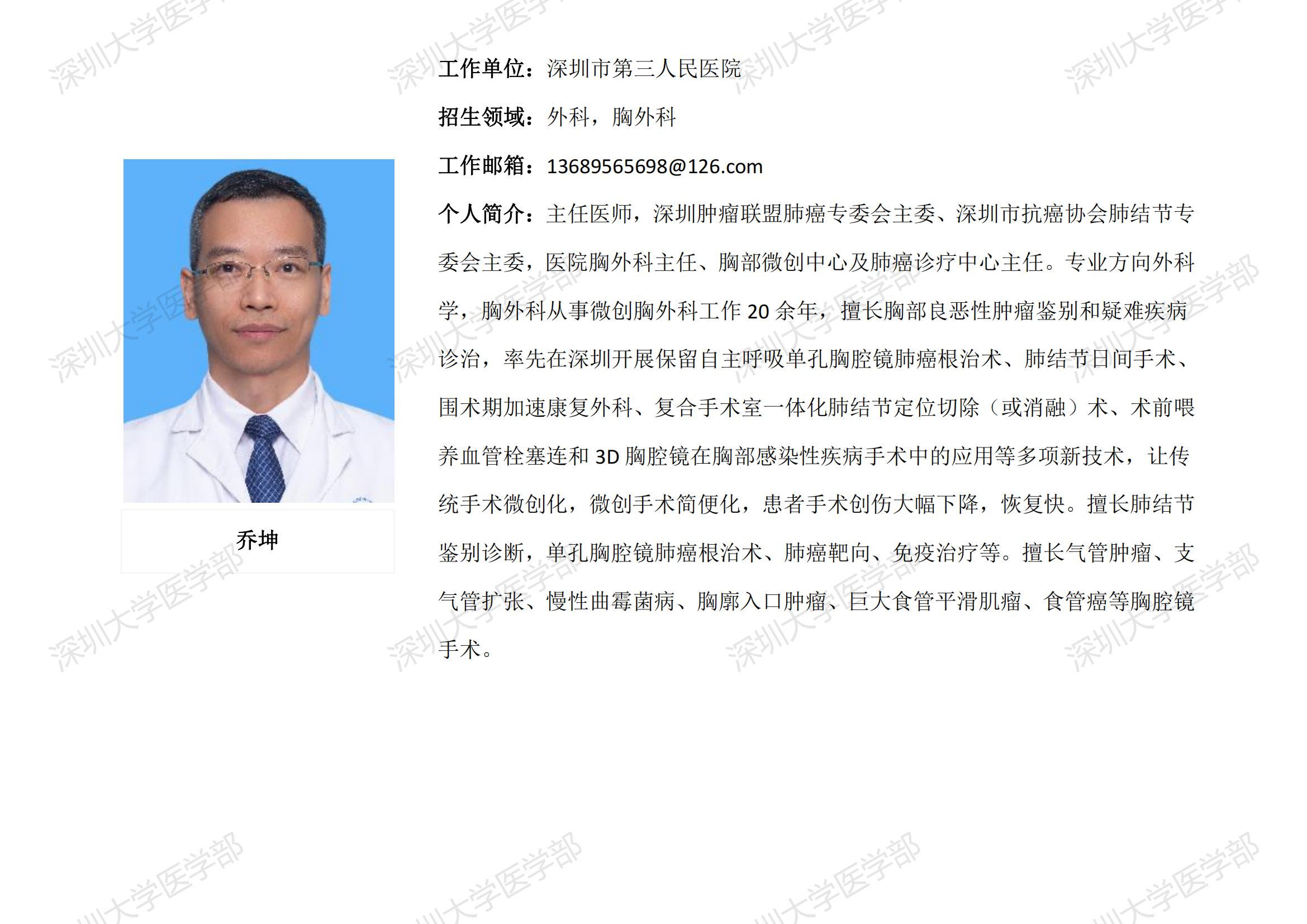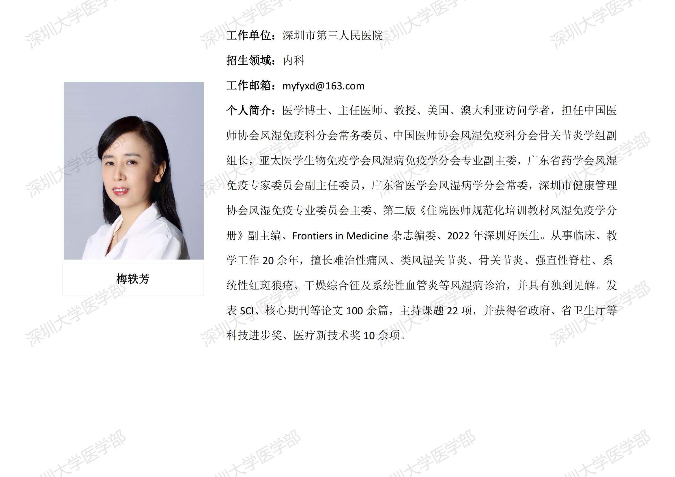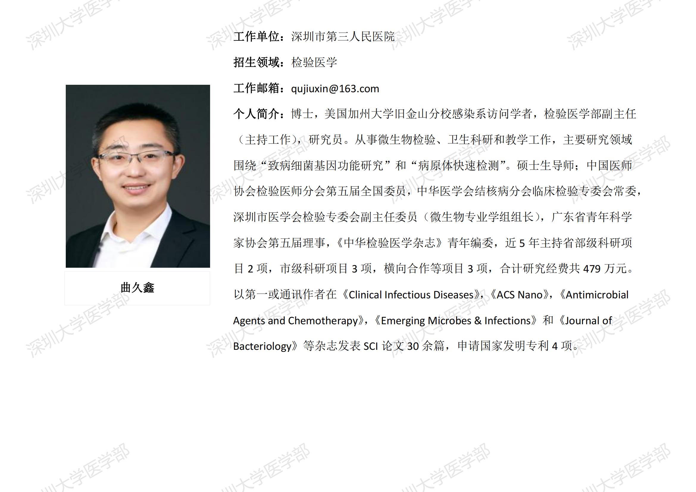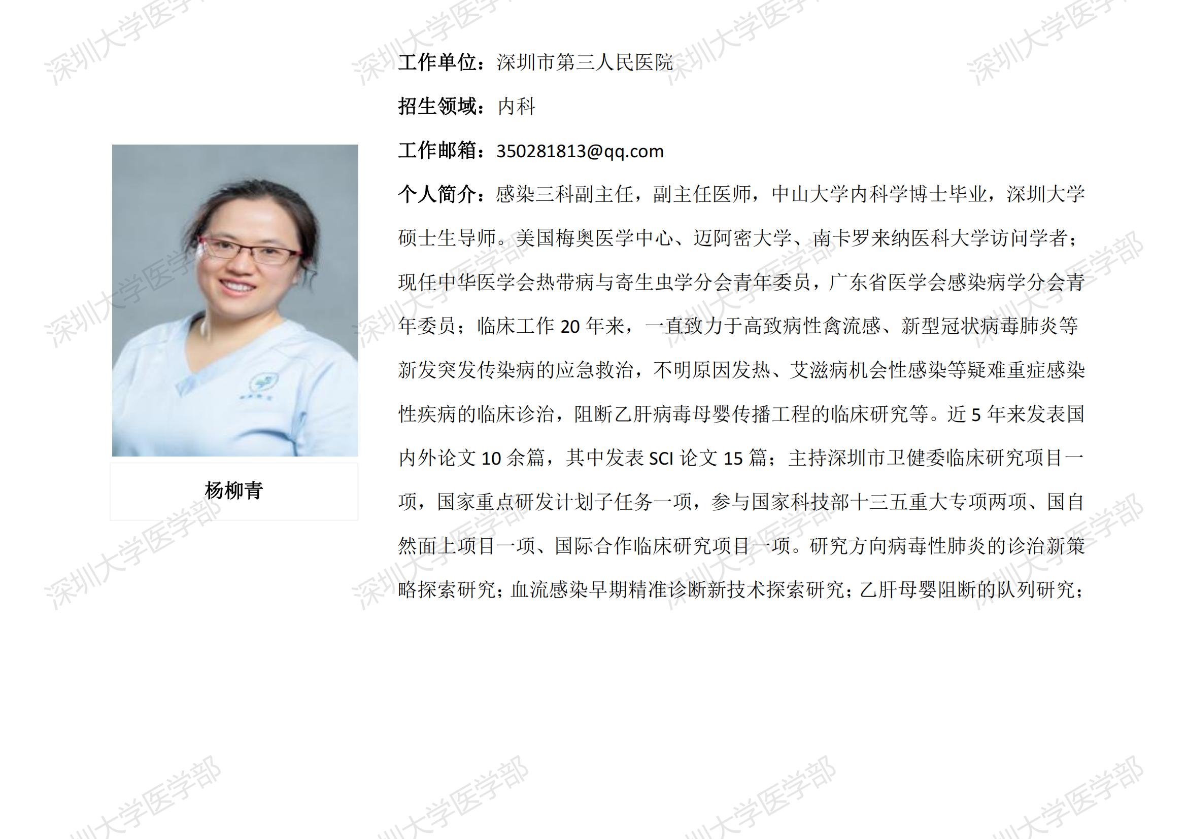 球盟会QMH(中国)官方网站 临床医学专业硕士研究生导师简介--深圳市第三人民医院