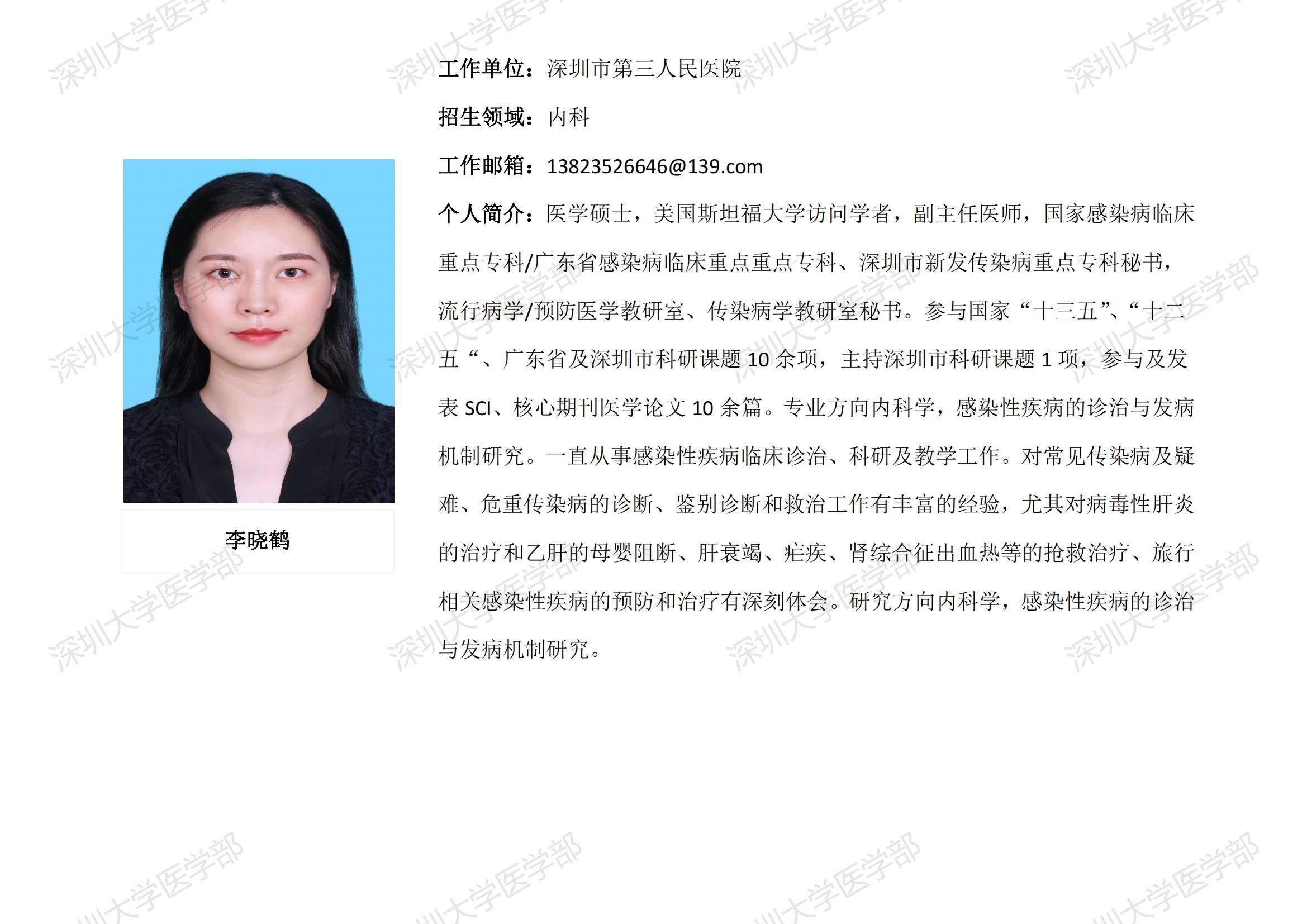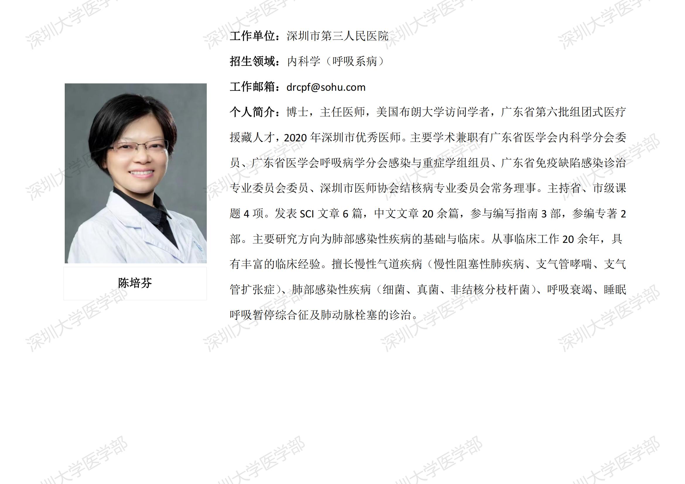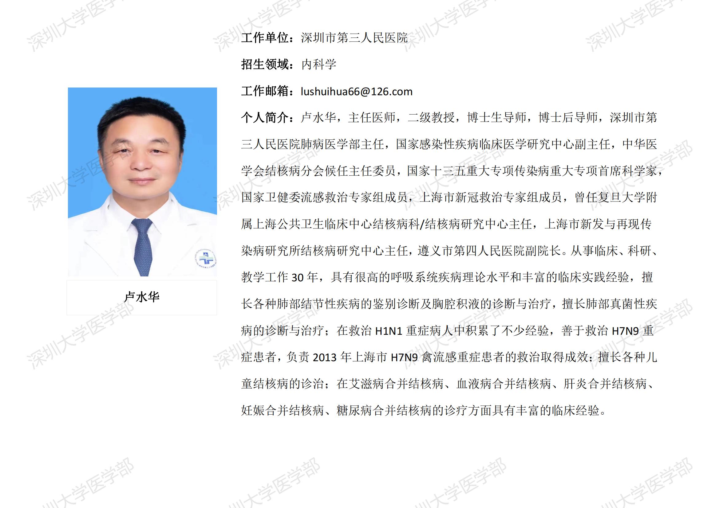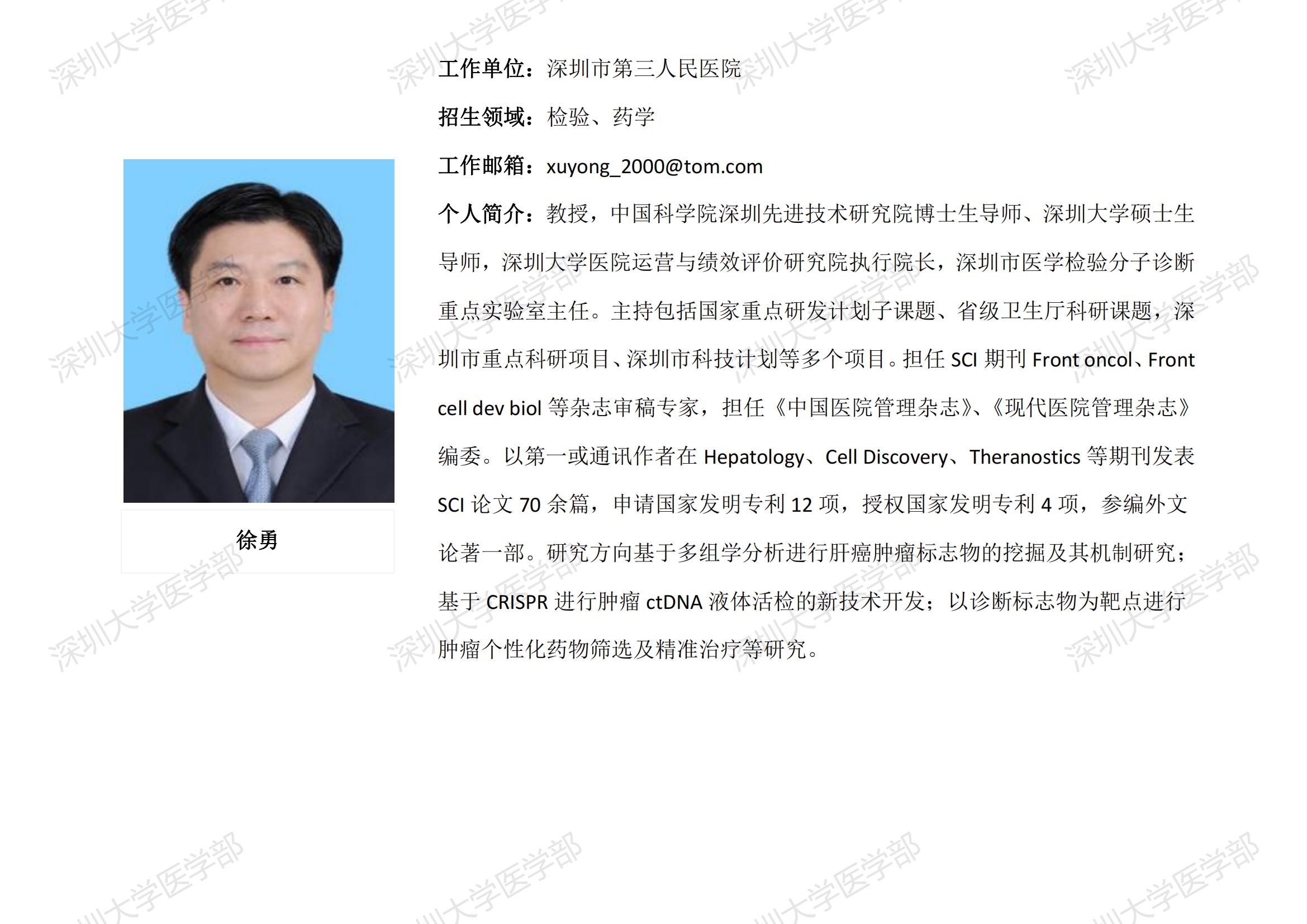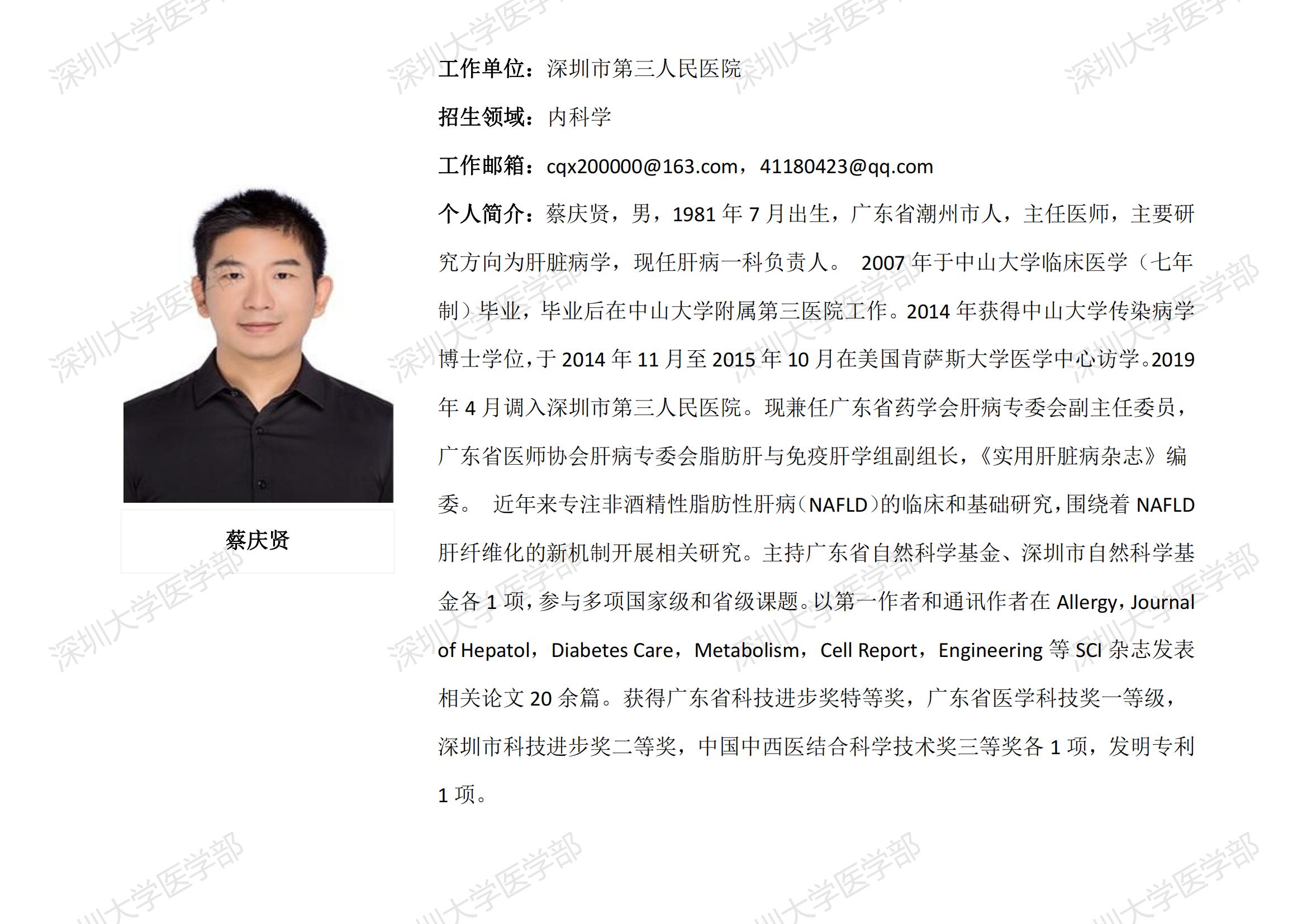 球盟会QMH(中国)官方网站 临床医学专业硕士研究生导师简介--深圳市第三人民医院