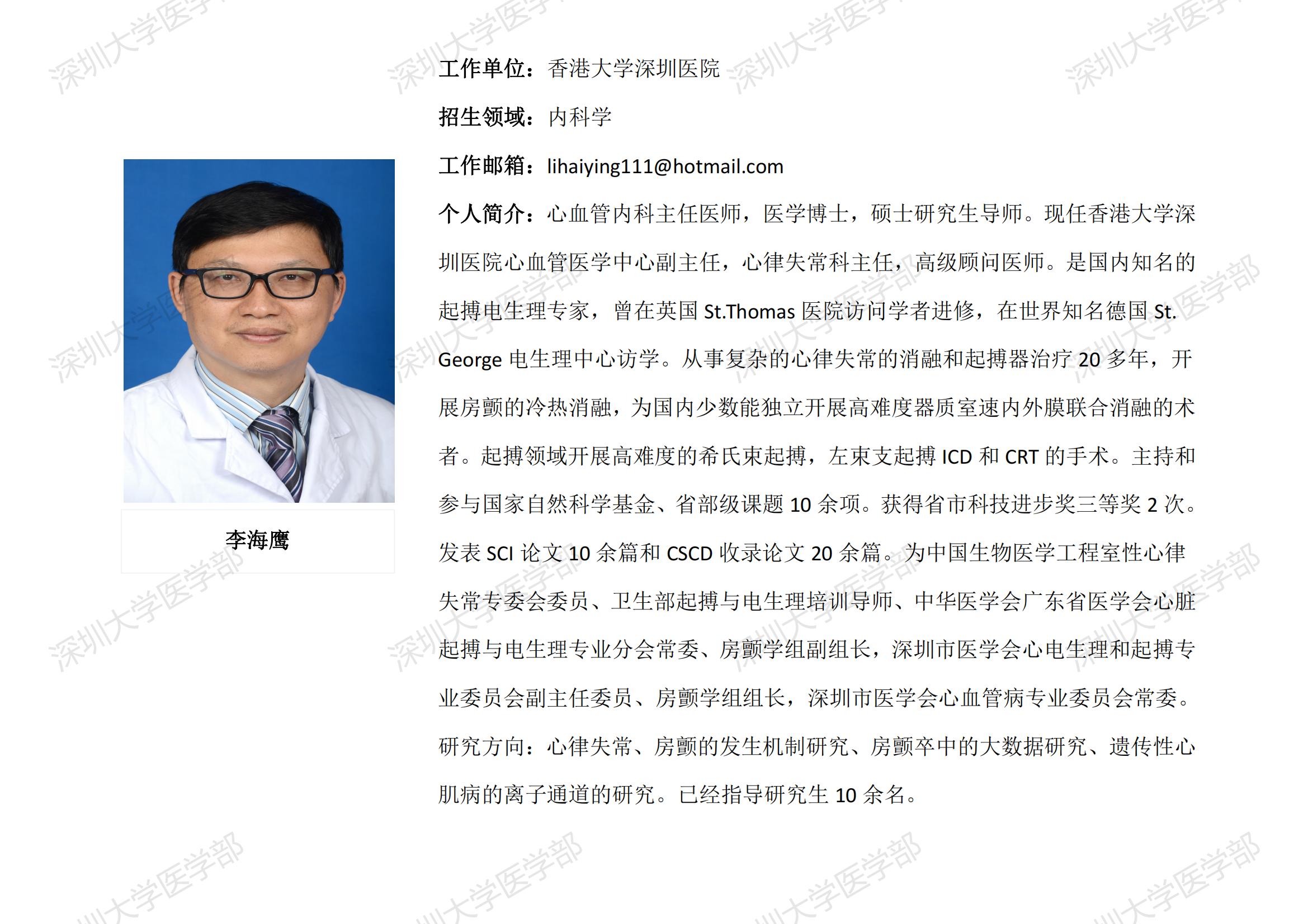 球盟会QMH(中国)官方网站 临床医学专业硕士研究生导师简介--香港大学深圳医院