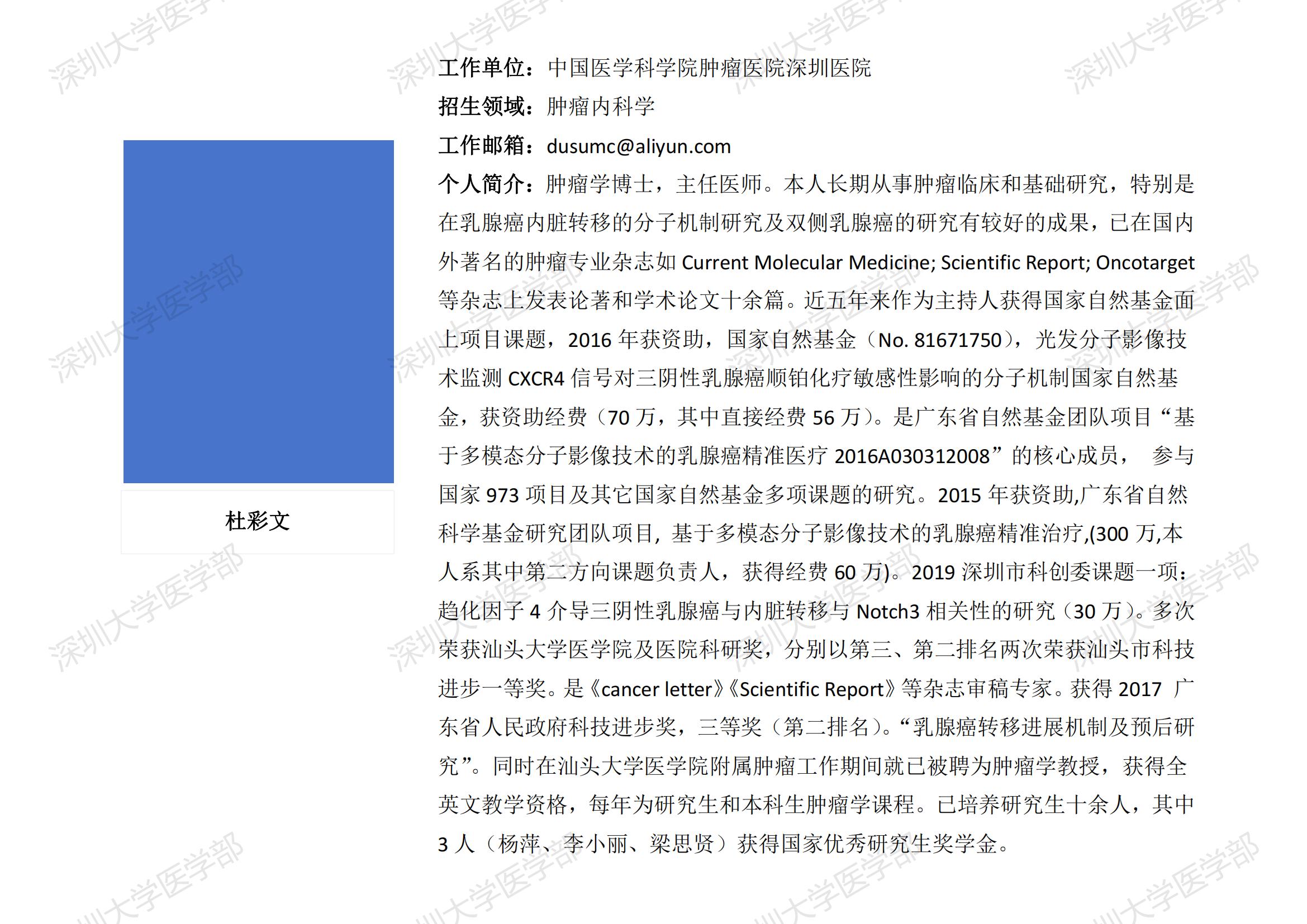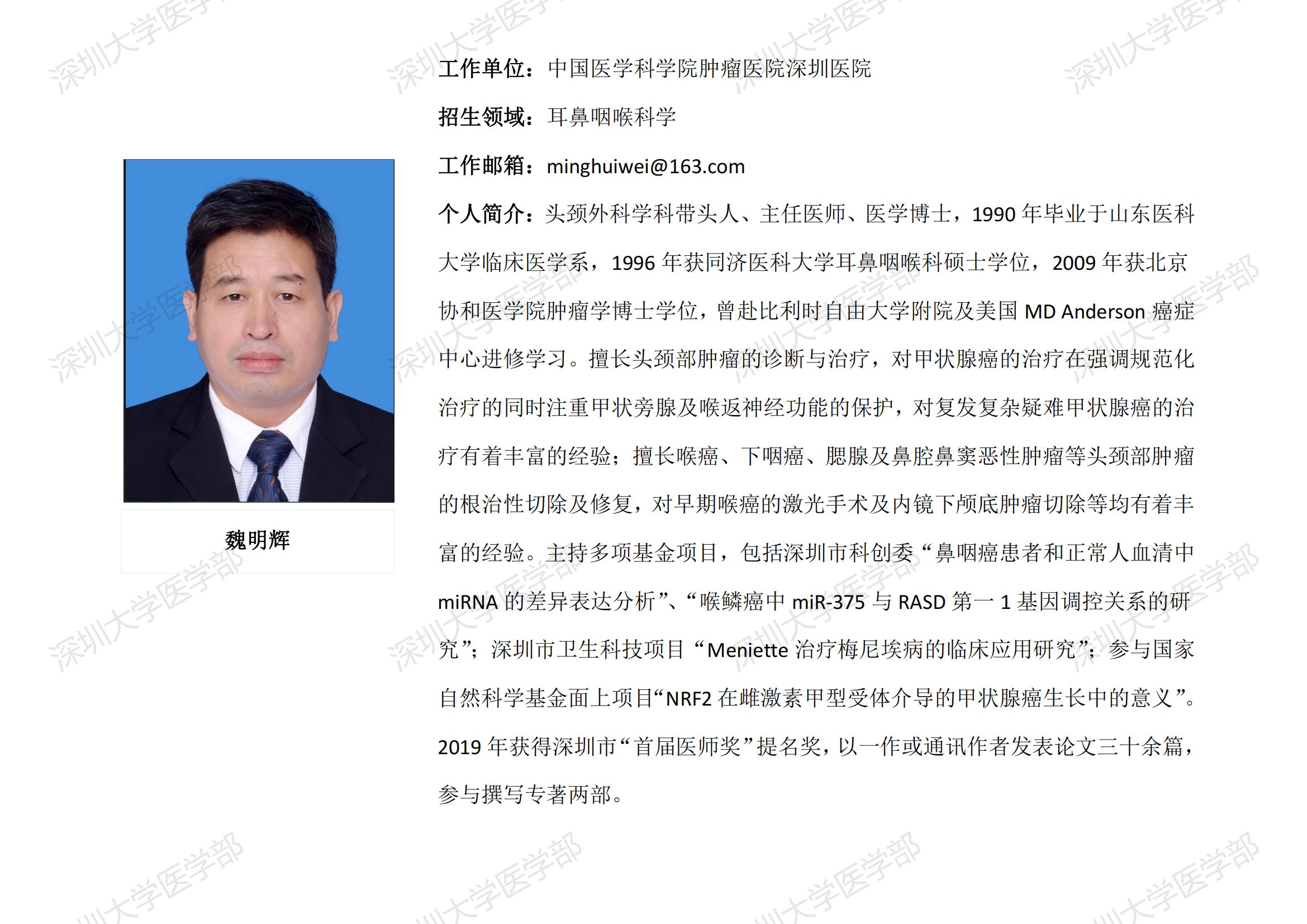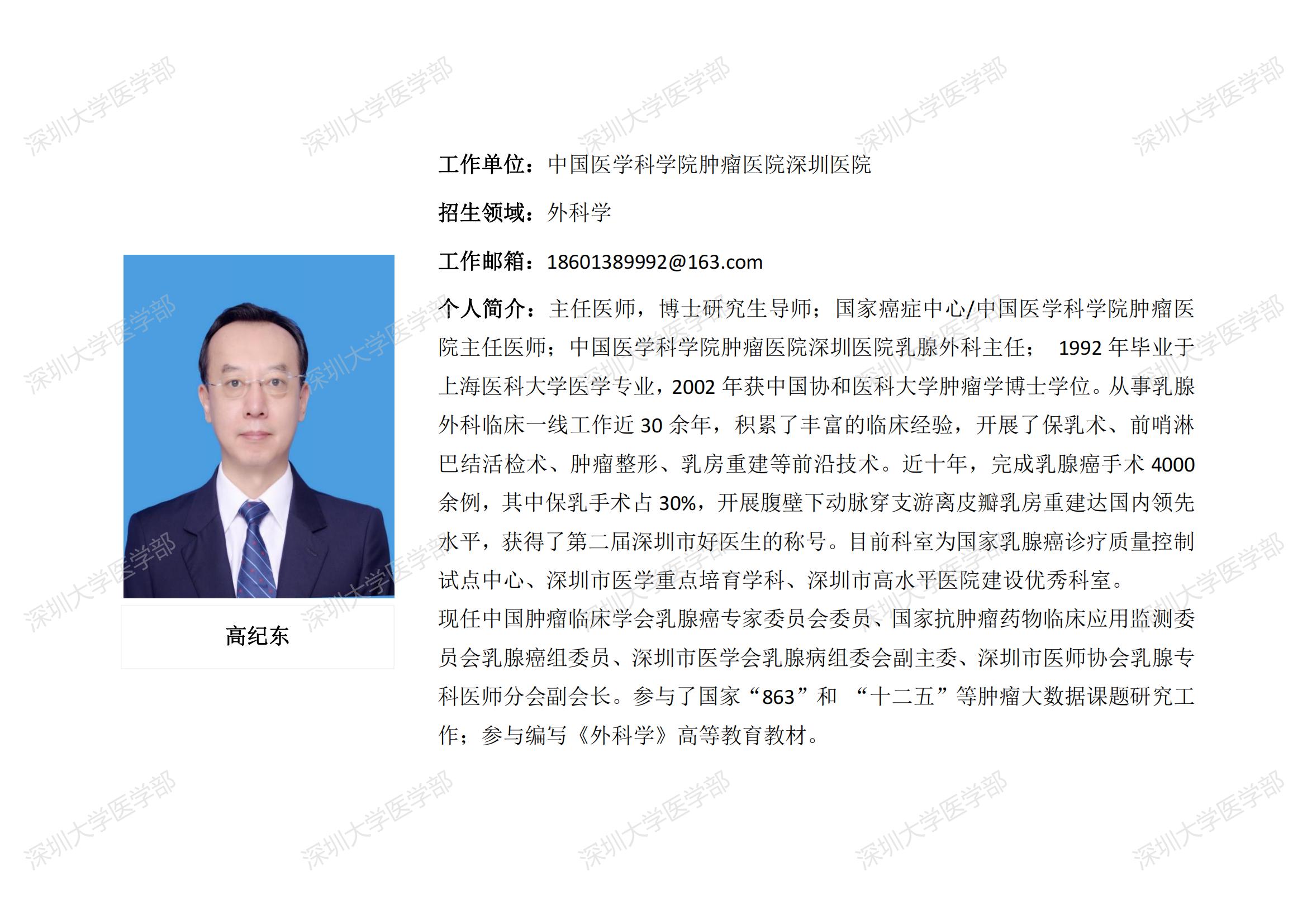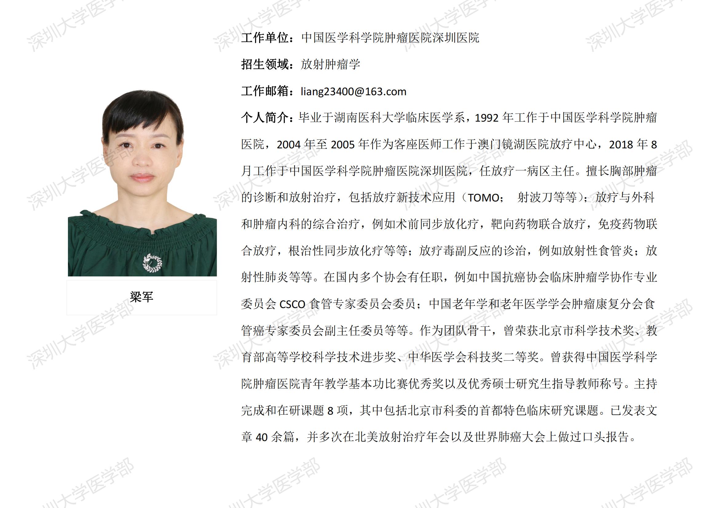 球盟会QMH(中国)官方网站 临床医学专业硕士研究生导师简介--中国医学科学院肿瘤医院深圳医院