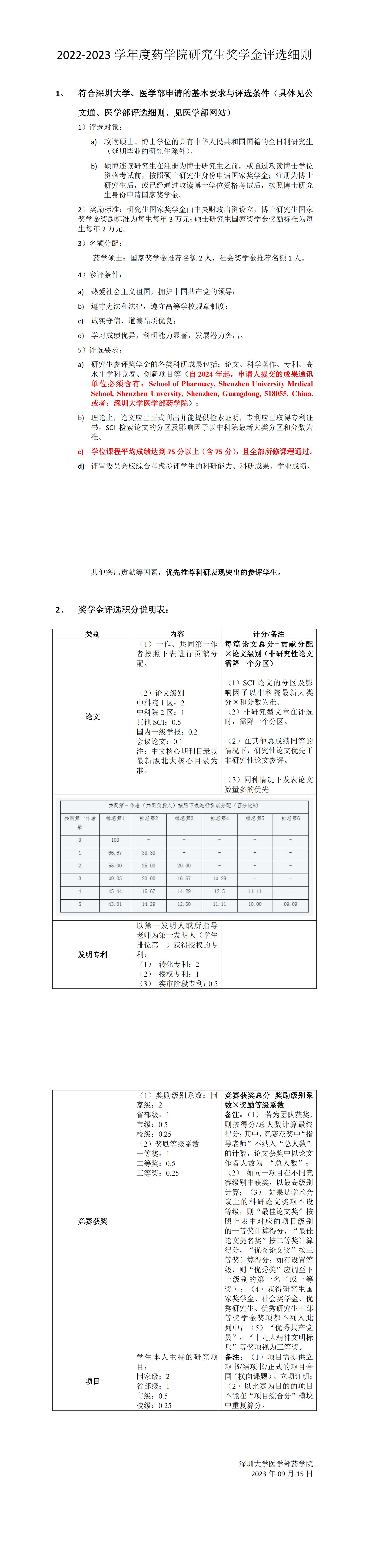 【信息公示】2022-2023 学年度药学院研究生奖学金评选细则