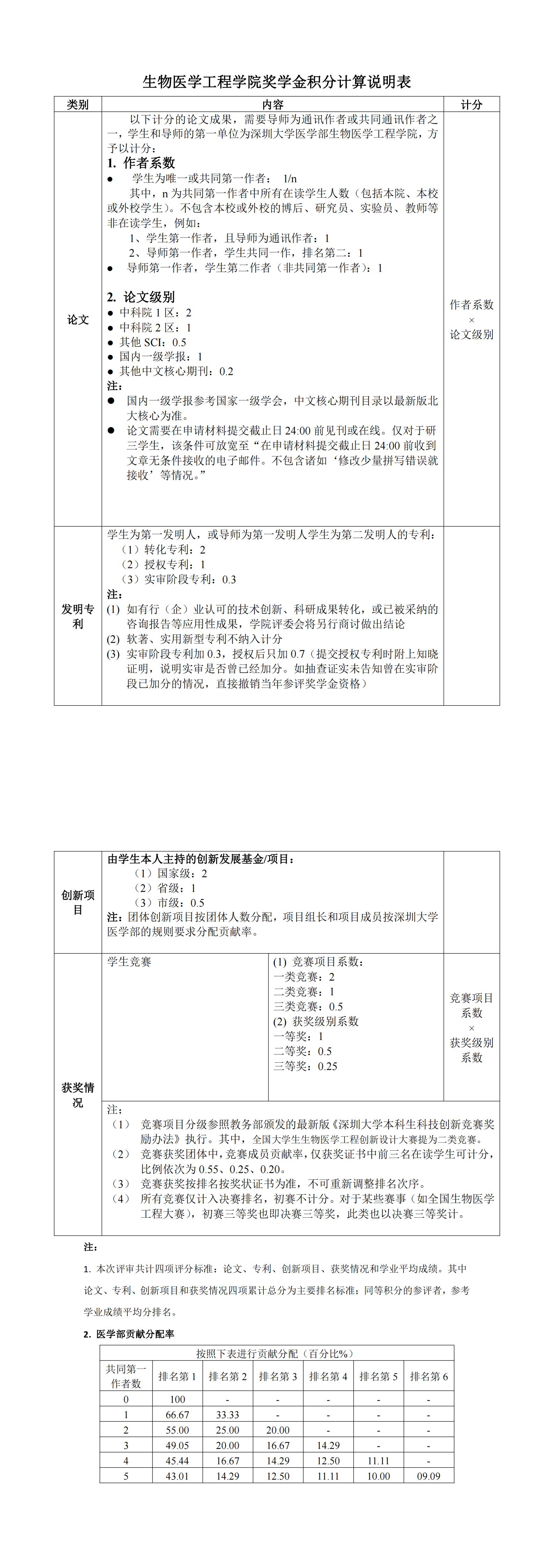 【信息公示】生物医学工程学院奖学金积分计算说明表