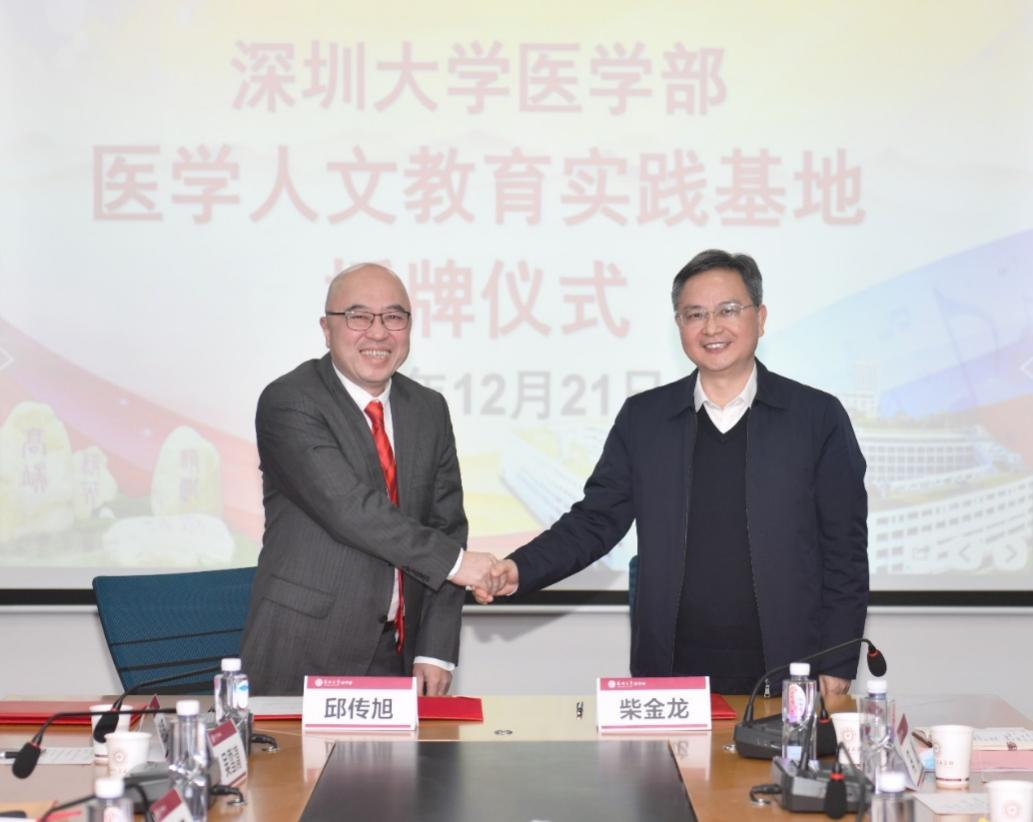 最后,柴金龙进行了总结发言。他先简要介绍了球盟会QMH(中国)官方网站 近来的工作和目标,并表示,深大球盟会QMH(中国)官方网站 成立12年来,医学学科发展迅猛,在学科建设、人才培养、科学研究等方面都取得了不俗的成绩。近年来,国家、深圳市对医疗卫生事业建的建设力度不断加强。球盟会QMH(中国)官方网站 将继续秉持“慈心仁术,深医精诚”的部训精神,与罗湖区医养融合老年病医院、深圳大学总医院血液肿瘤科、妇产科等一起,把球盟会QMH(中国)官方网站 第一批医学人文教育实践基地建设好,致力于培养有基础、有责任、有担当、有温度、有奉献精神的医务工作者。授牌仪式在热烈的掌声中圆满结束。