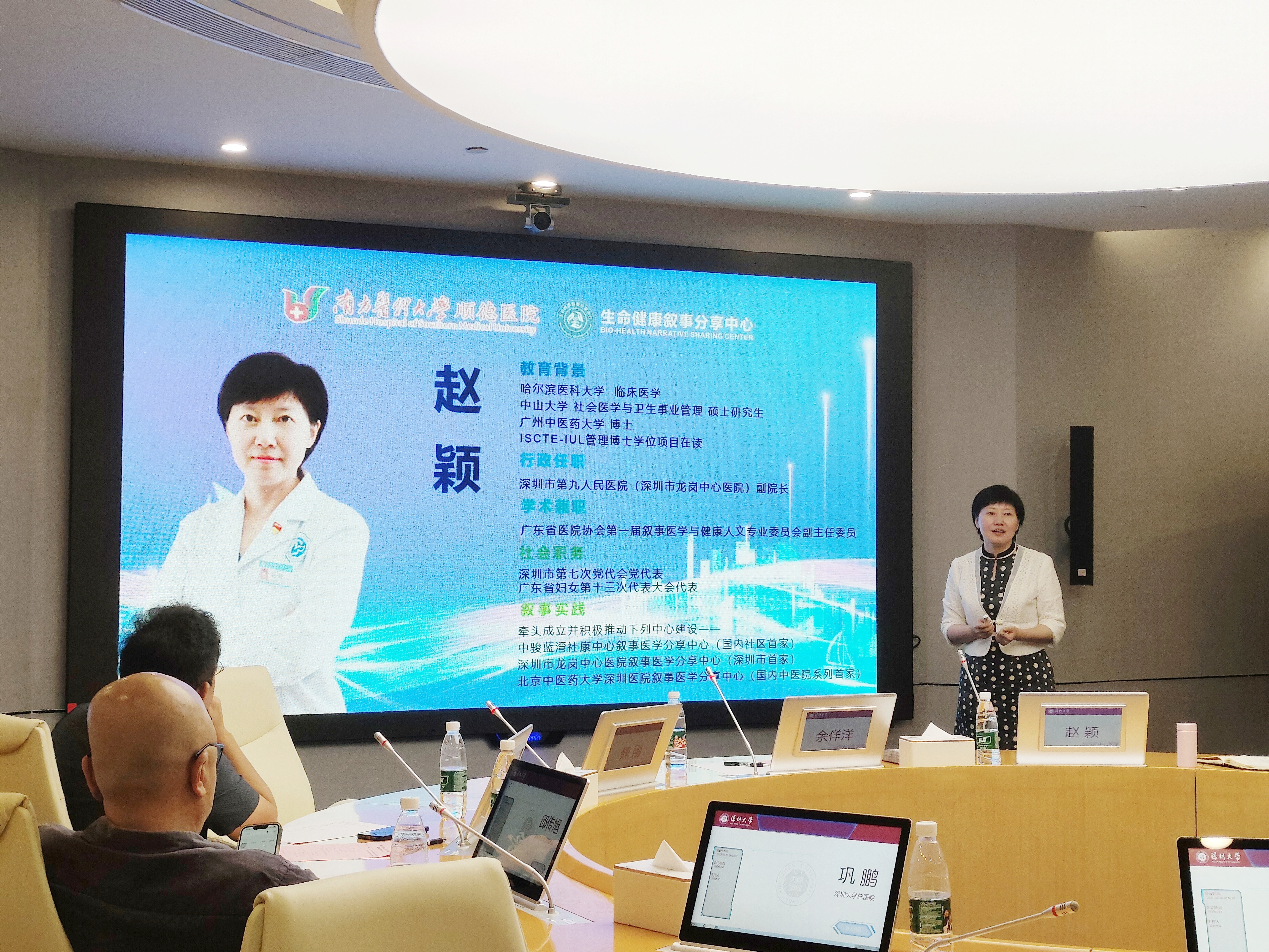 赵颖主要从城市与医院概况、叙事医学助推人文医院建设和叙事医学在社区落地生根这三方面介绍了深圳市龙岗中心医院开展叙事医学的情况。尤为突出了在社区开展叙事医学、推动社康中心医患关系进步的可喜面貌。