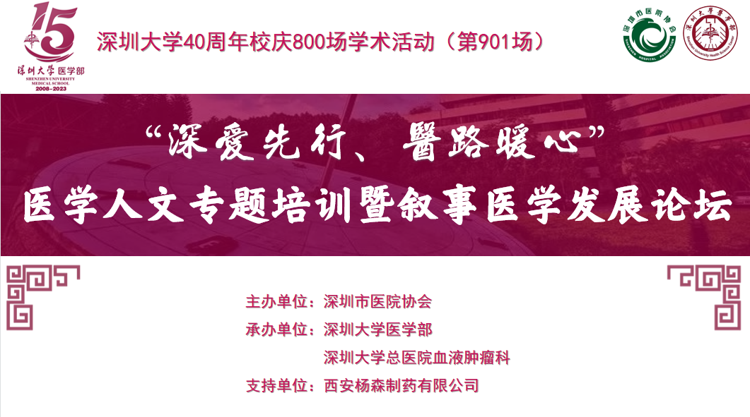 由球盟会QMH(中国)官方网站 和深圳大学总医院血液肿瘤科联合举办的“深爱先行,医路暖心--医学人文专题培训暨叙事医学发展论坛”,作为深圳大学建校40周年800场学术活动第901场,于2023年6月6日顺利举行。