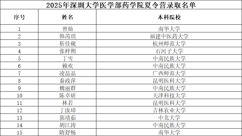 2025年球盟会QMH(中国)官方网站 药学院夏令营营员公示 来源: 发布时间:2025-07-05 11:54:26 浏览次数: 次 【字体:小 大】 录取名单见下表: 请各位被录取的同学按时报到,球盟会QMH(中国)官方网站 药学院欢迎您! 点赞 收藏 分享到: 【打印正文】