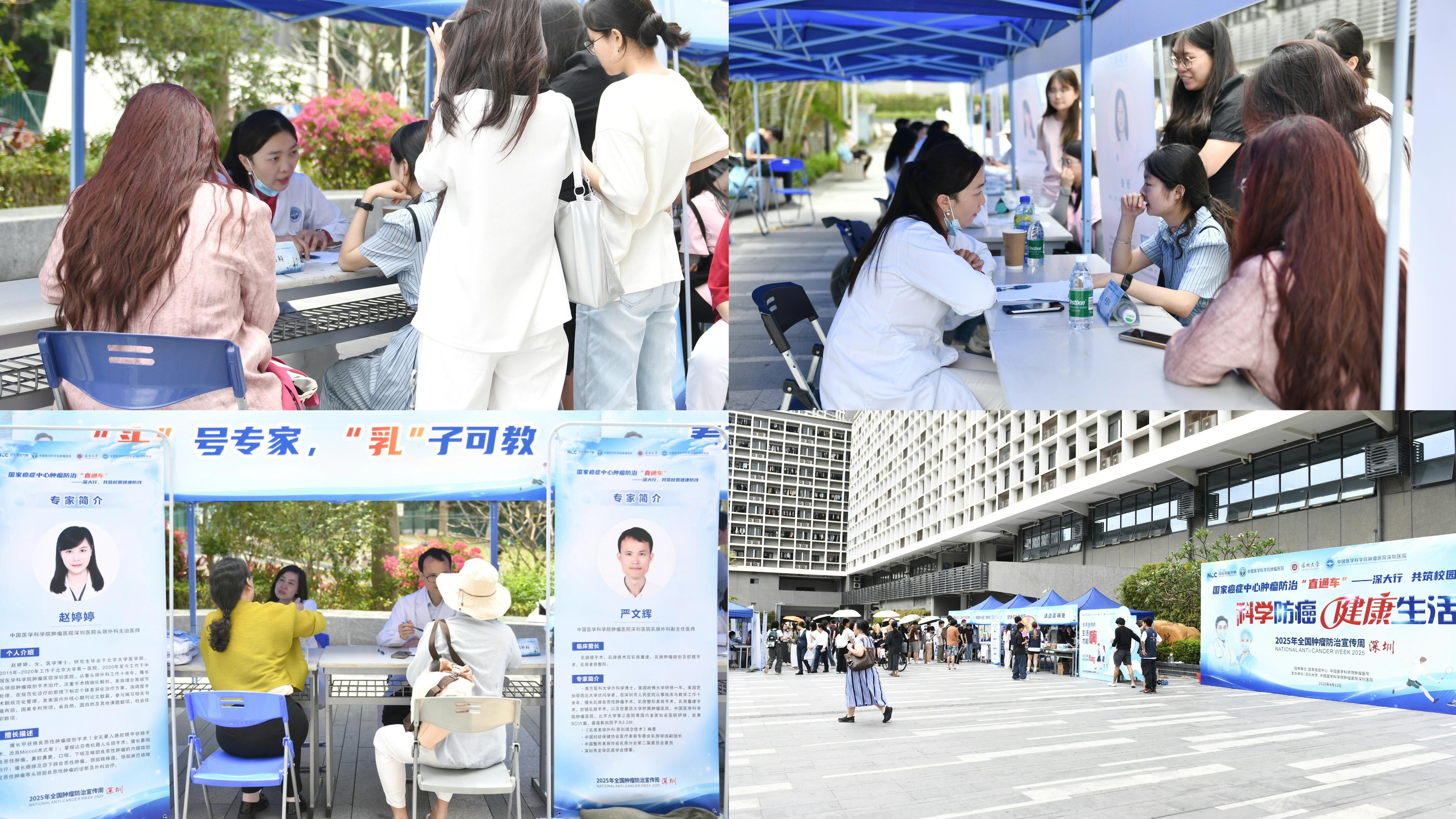 2025年4月11日,在第31个全国肿瘤防治宣传周启动之际,我校联合国家癌症中心、中国医学科学院肿瘤医院深圳医院,以"科学防癌 健康生活"为主题,开展了一场集科普宣教、义诊筛查、健康挑战于一体的大型公益活动。中国医学科学院肿瘤医院深圳医院院长王绿化带领医院专家团队出席活动,我校工会、离退休办公室、球盟会QMH(中国)官方网站 等部门负责人参加活动。